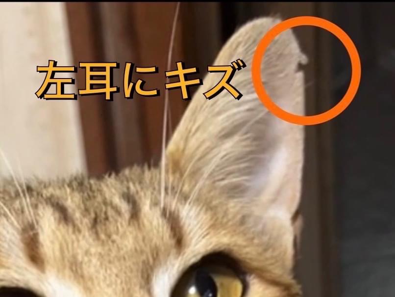 左耳にひっかけ傷