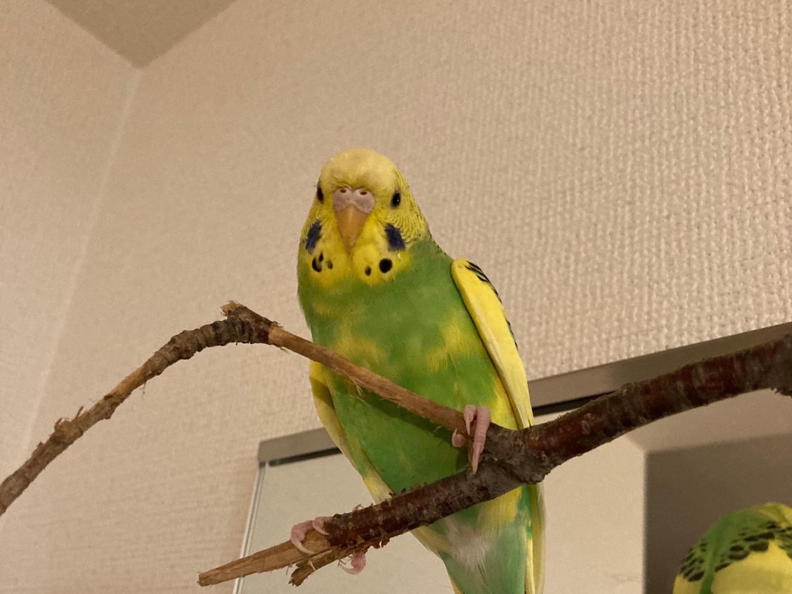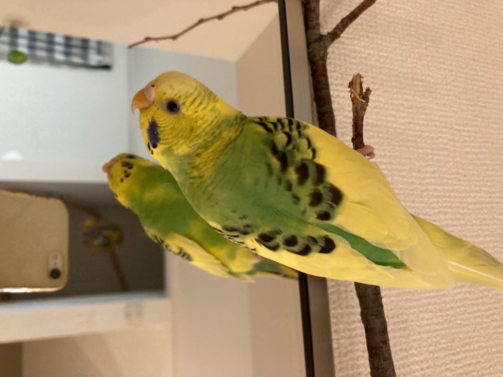 黄色と黄緑のセキセイインコです