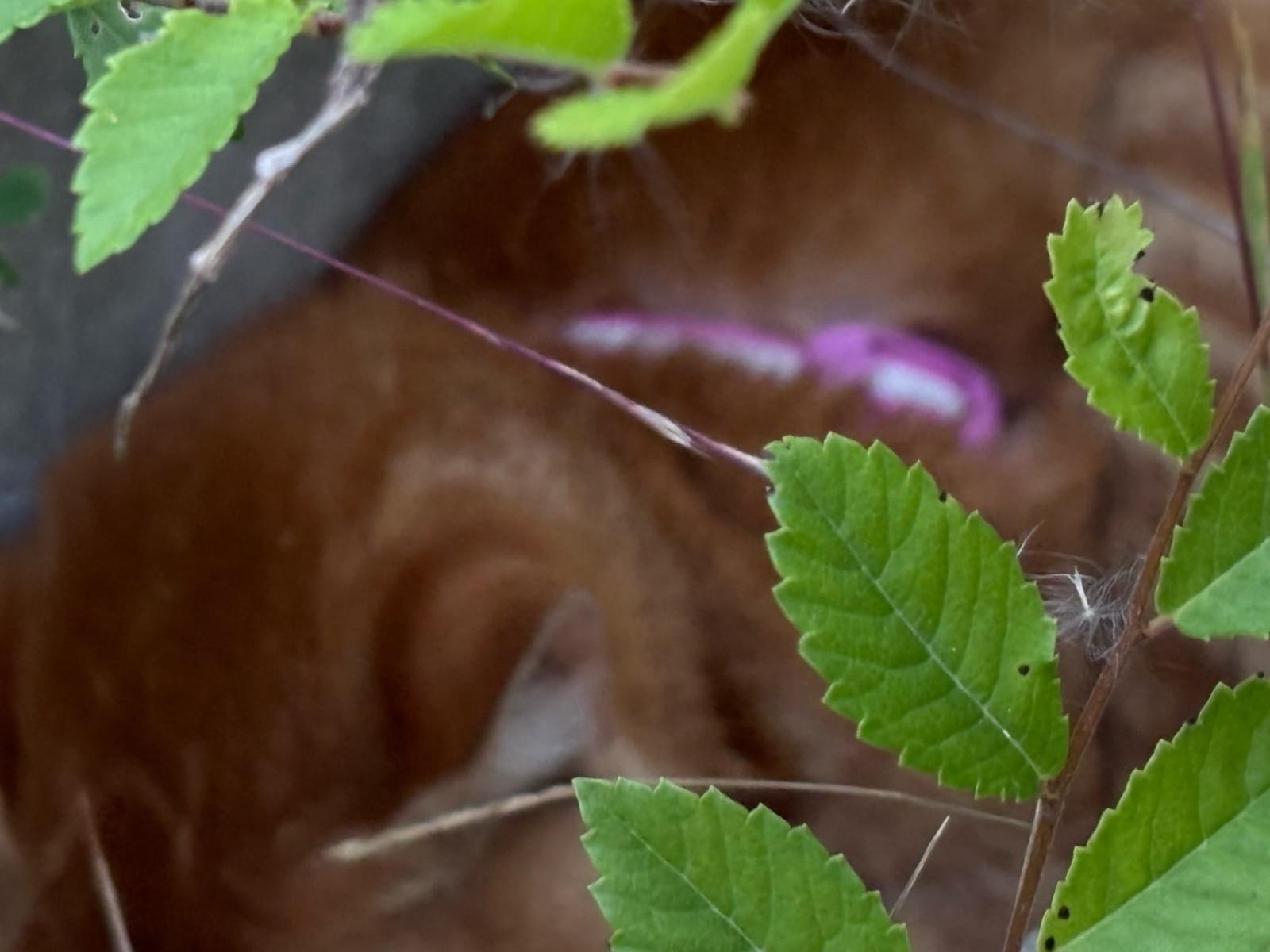 小柄でピンクの首輪をしていて毛並みも悪くないので迷子猫だと思います。