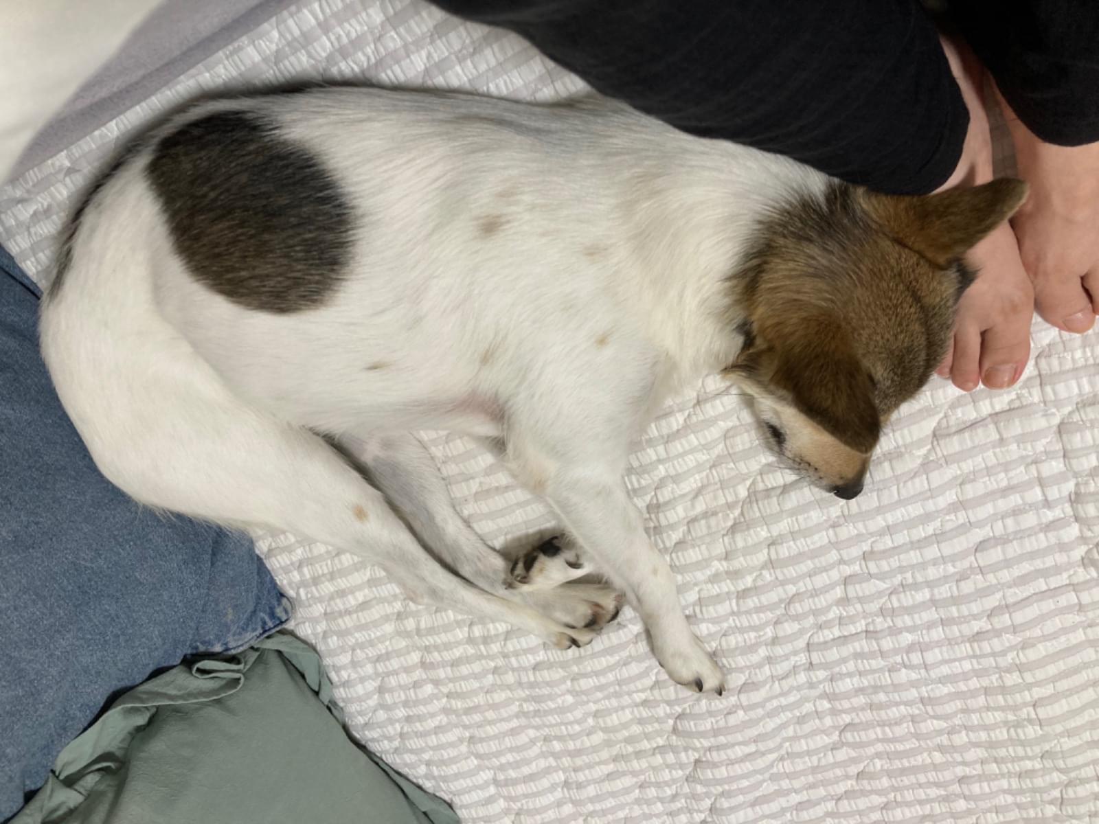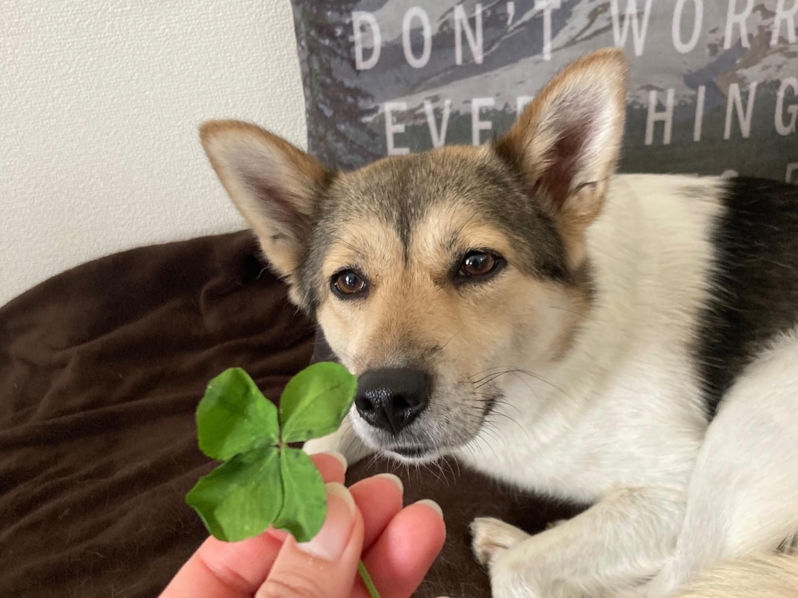 白ベース黒茶柄のMIX犬を探しています!