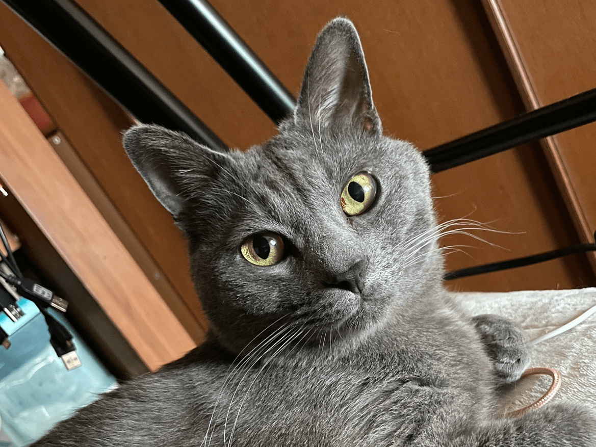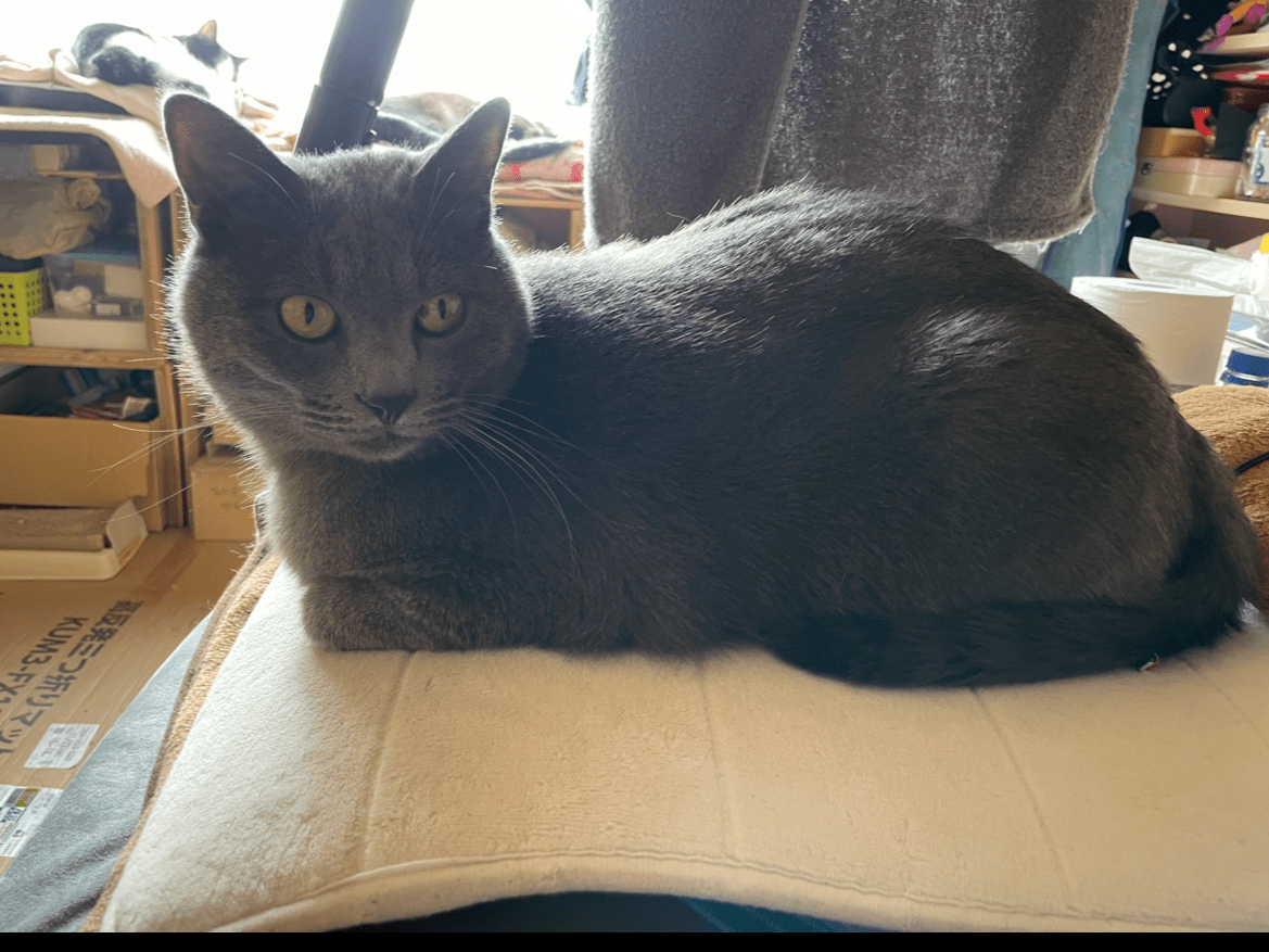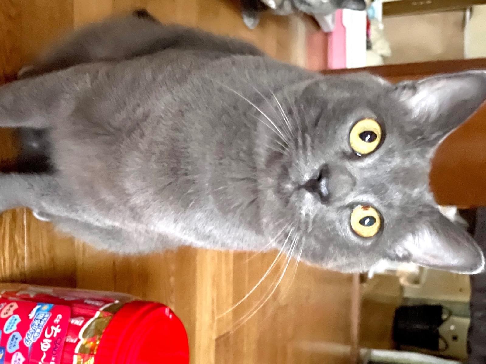 ①大きめ体重6kg(脱走時)長い尻尾全身グレーでシャルトリュー、ロシアンブルー風に見えます。