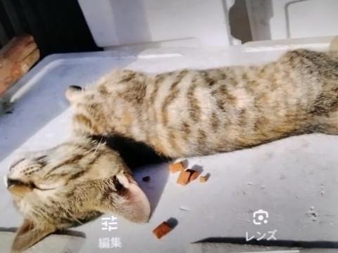 入院して一命をとりとめた子ネコで、迷子になった時は風邪で投薬中でした。