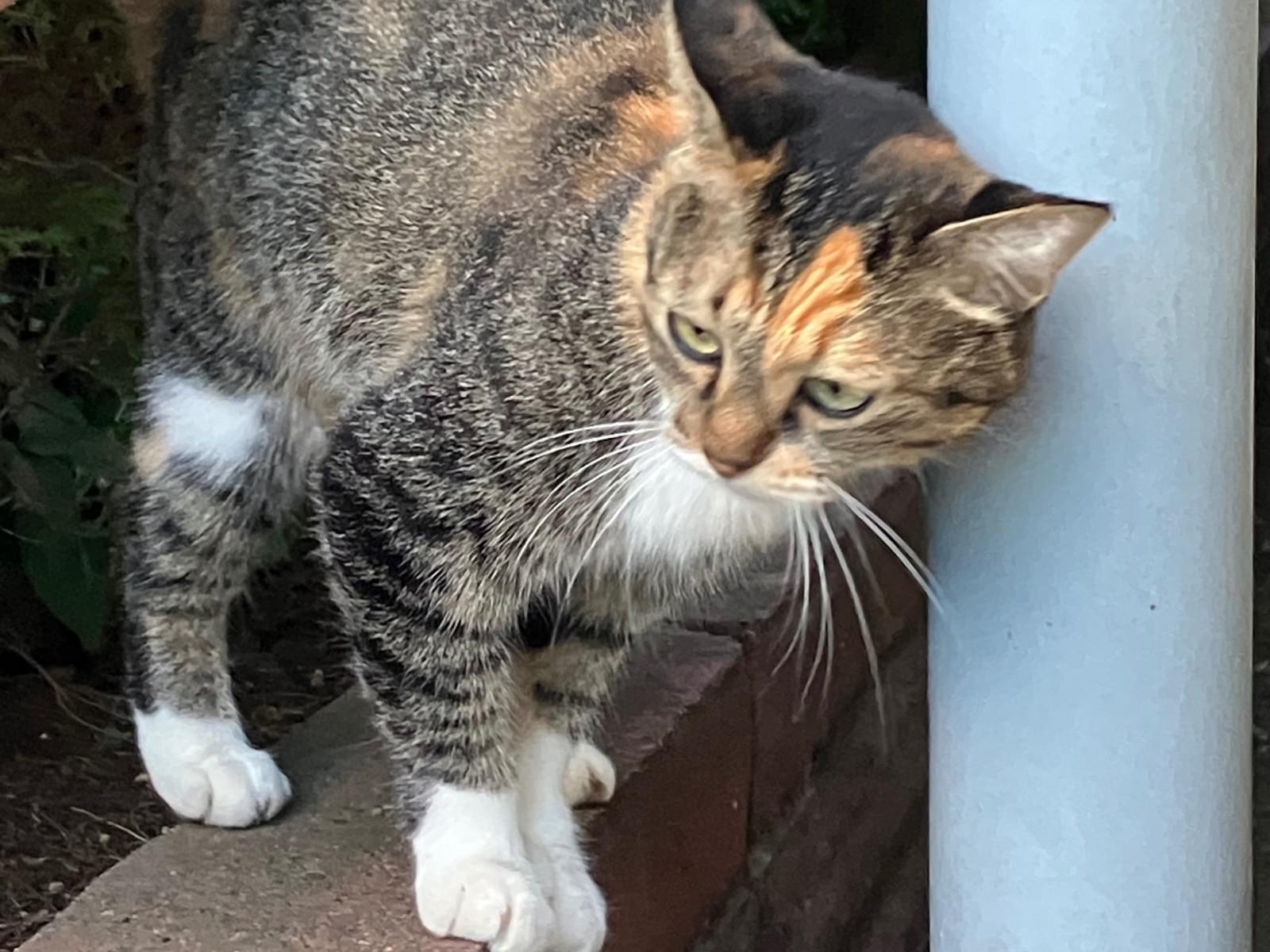 手足が短めで、足元が白い。右目に黒い点がある縞三毛ミーちゃんを探してます