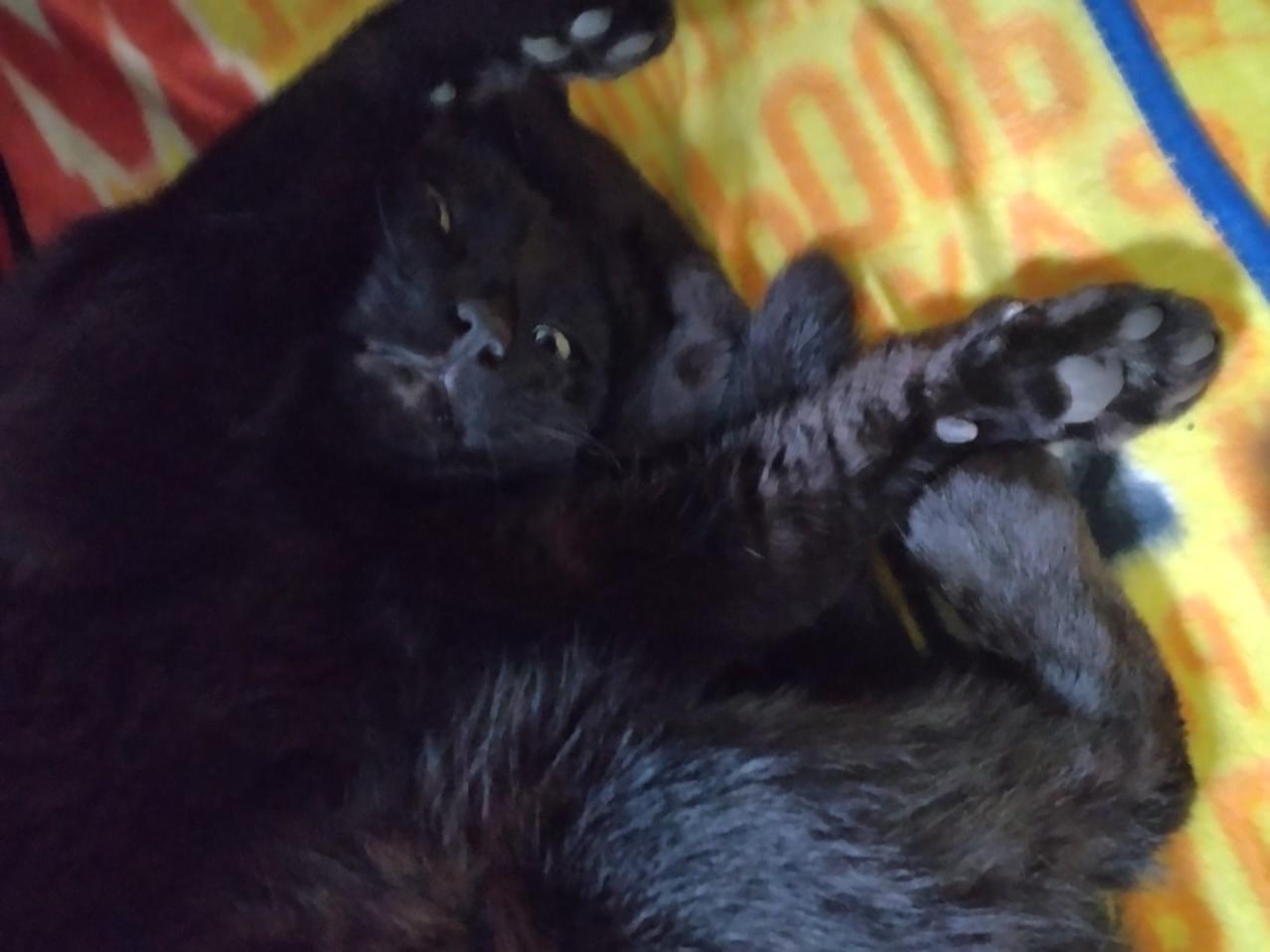 黒猫の雄で去勢済ですがしていないように見えます。