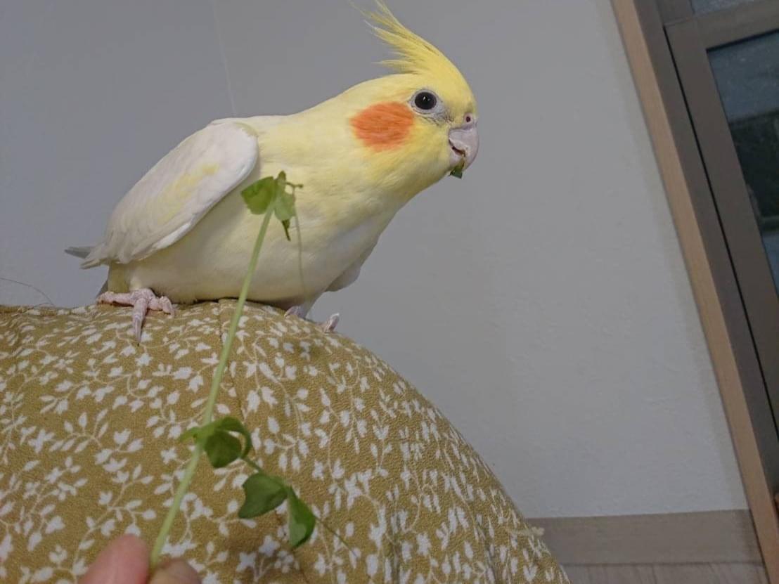 おっとりした性格で人懐っこく、指や肩にとまります。