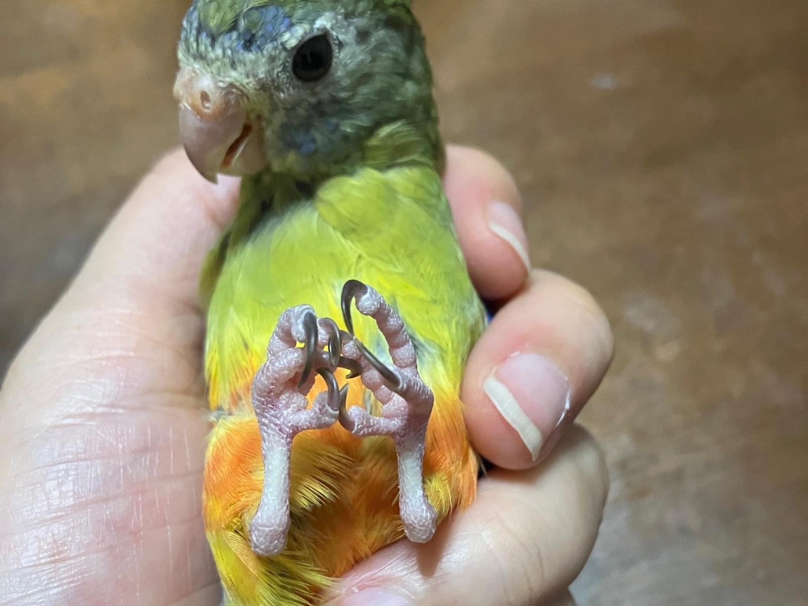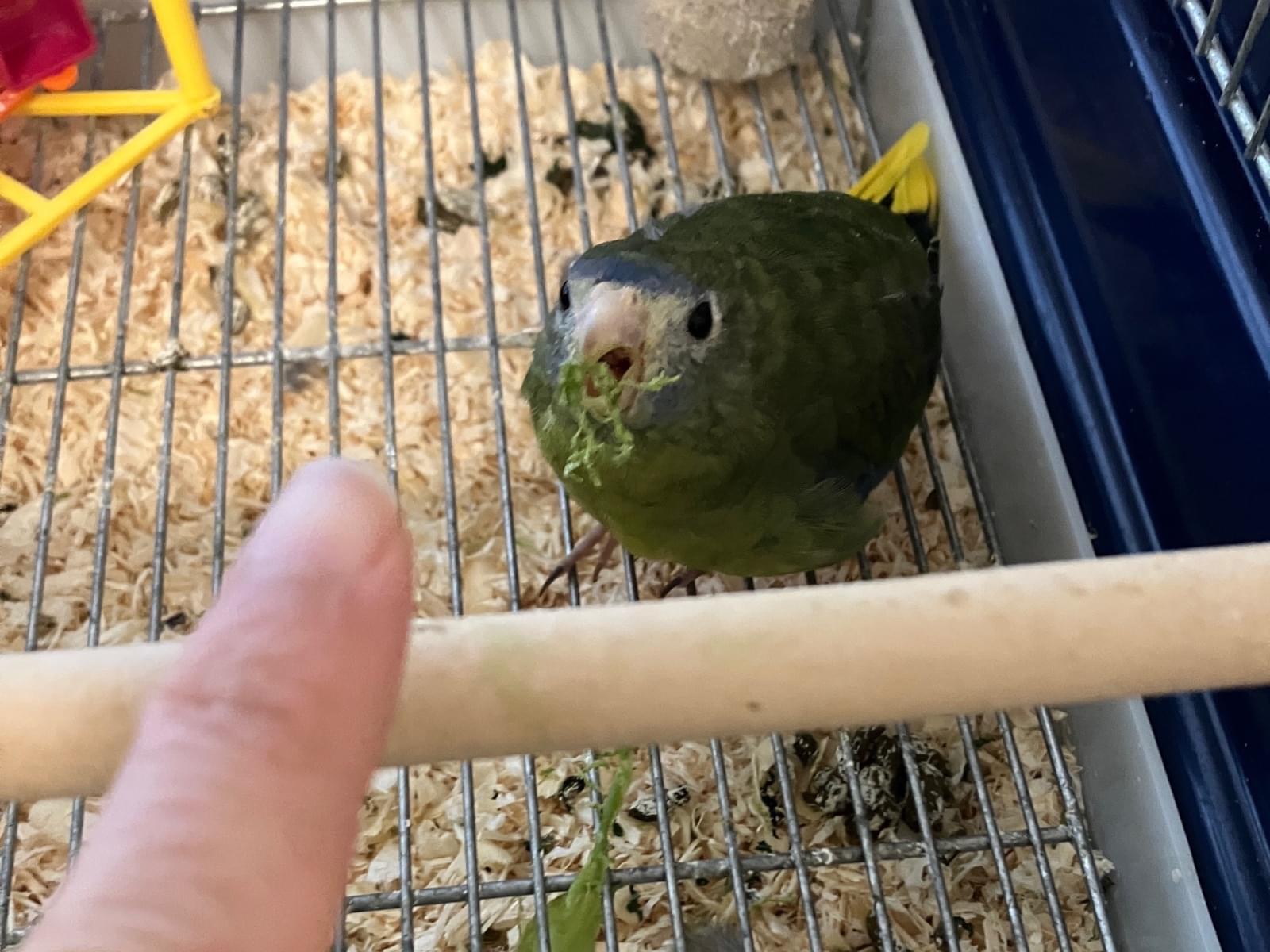 特徴: とても大人しい。基本あまり触ってほしくない。手を向けるとクチバシを開いて後退りしながら威嚇する。