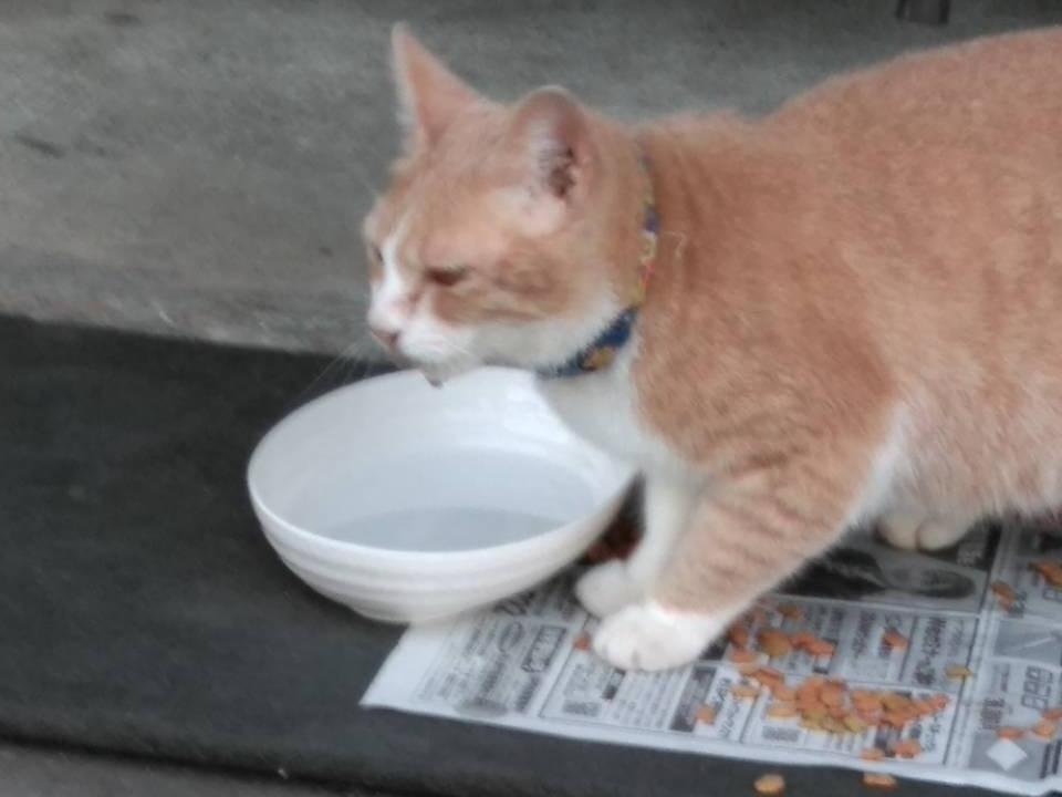 朝方ふらっと現れ地域猫たちにあげてるごはんを食べ水もちゃんと飲んでくれてました。