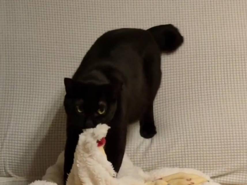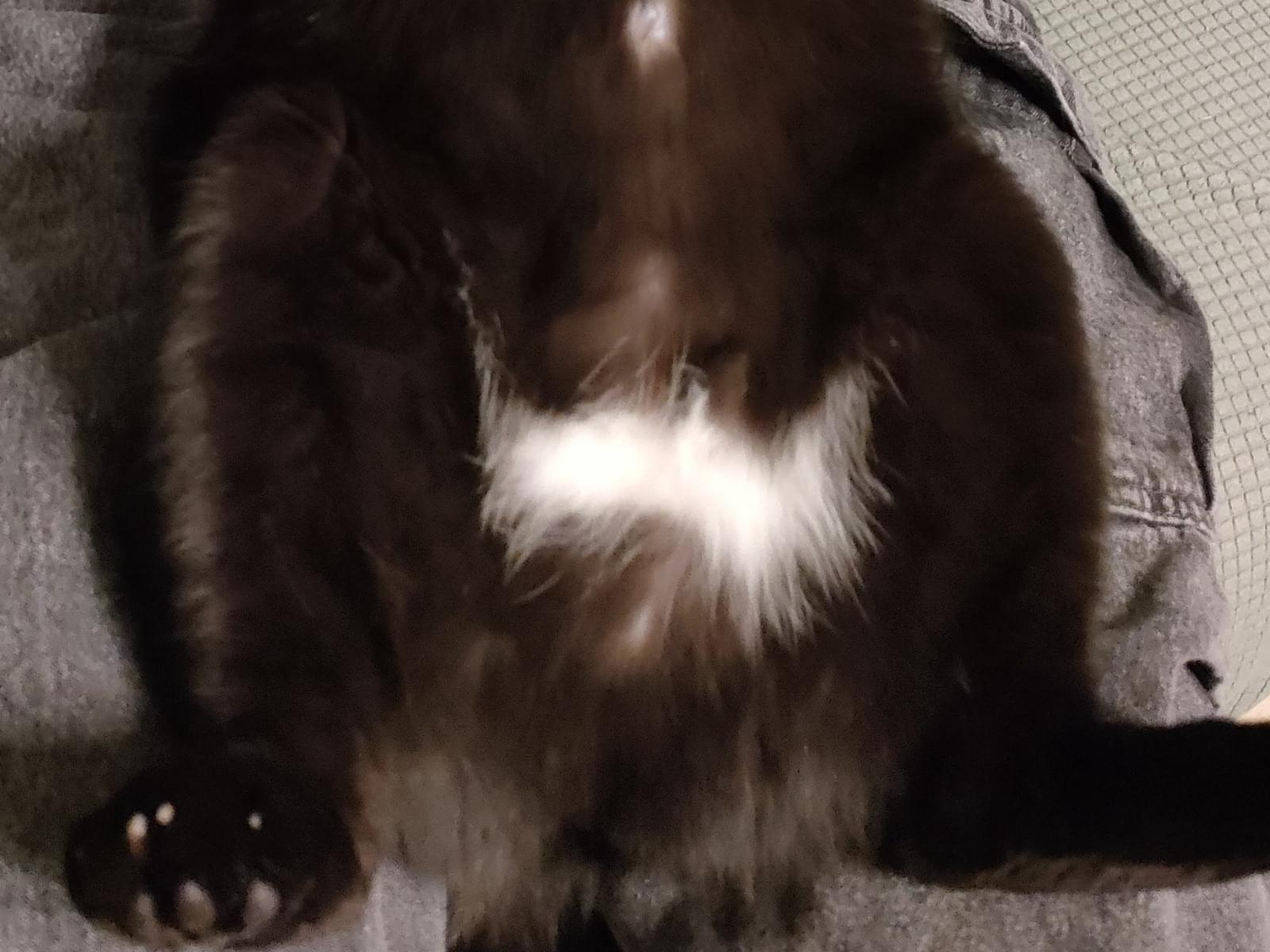 短毛で真っ黒に見えますが、日にあたるとうっすら縞々模様があります。