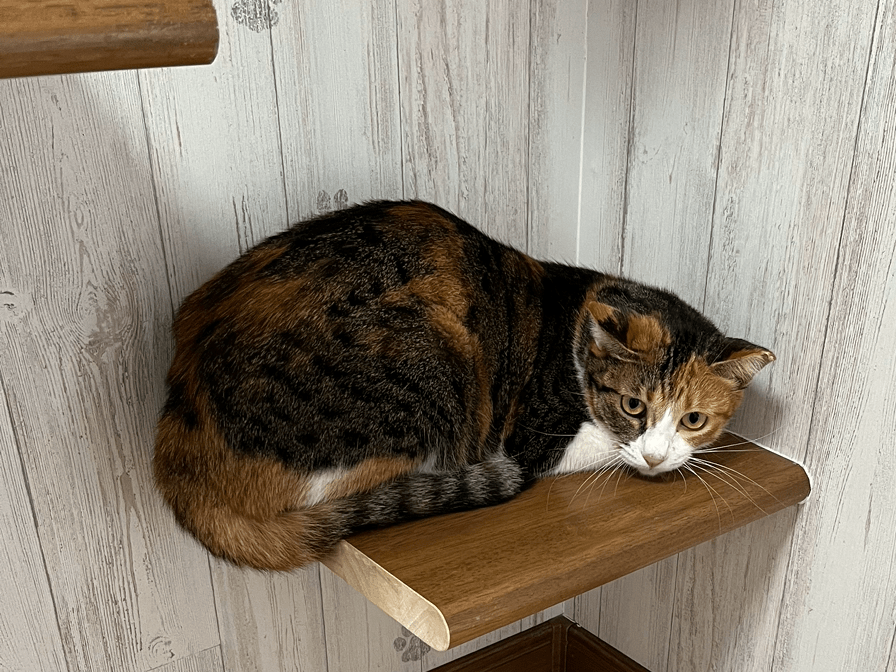 かなりビビりで、昨年11月に保護して8ヶ月たった今も、あまり懐いてません。