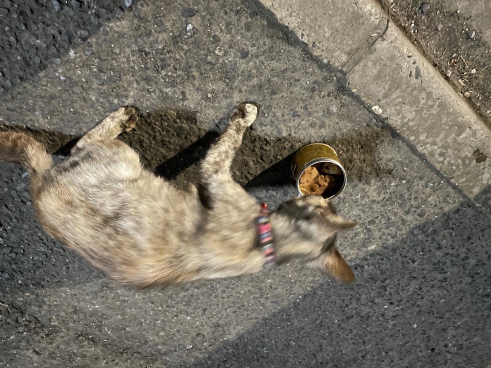 人懐っこく、足にスリスリしてきたので取り敢えずご飯をあげましたがどこか行ってしまいました、、