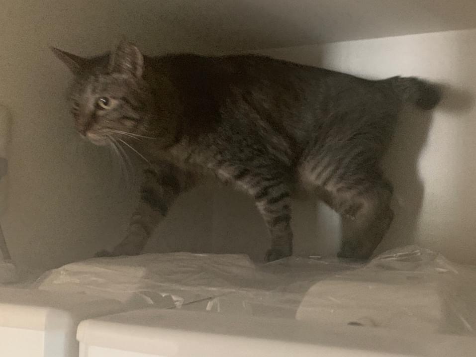 左さくら耳、短尾、鈴付き首輪(セーフティ)キジトラ探しています。