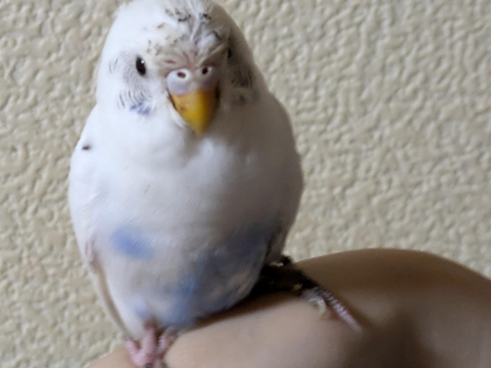 お腹辺りが少し青いです。羽に黒い模様があります。白色の面積が多いです。