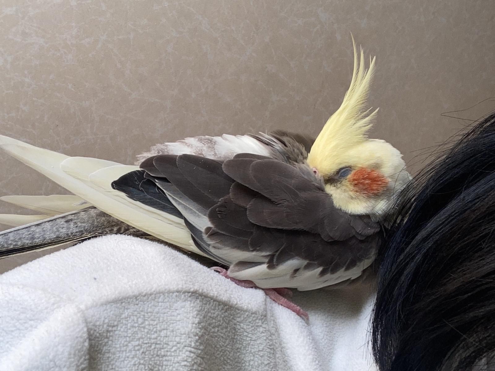 人見知りなので、近づくと逃げてしまいますが、肩に乗ってきます。