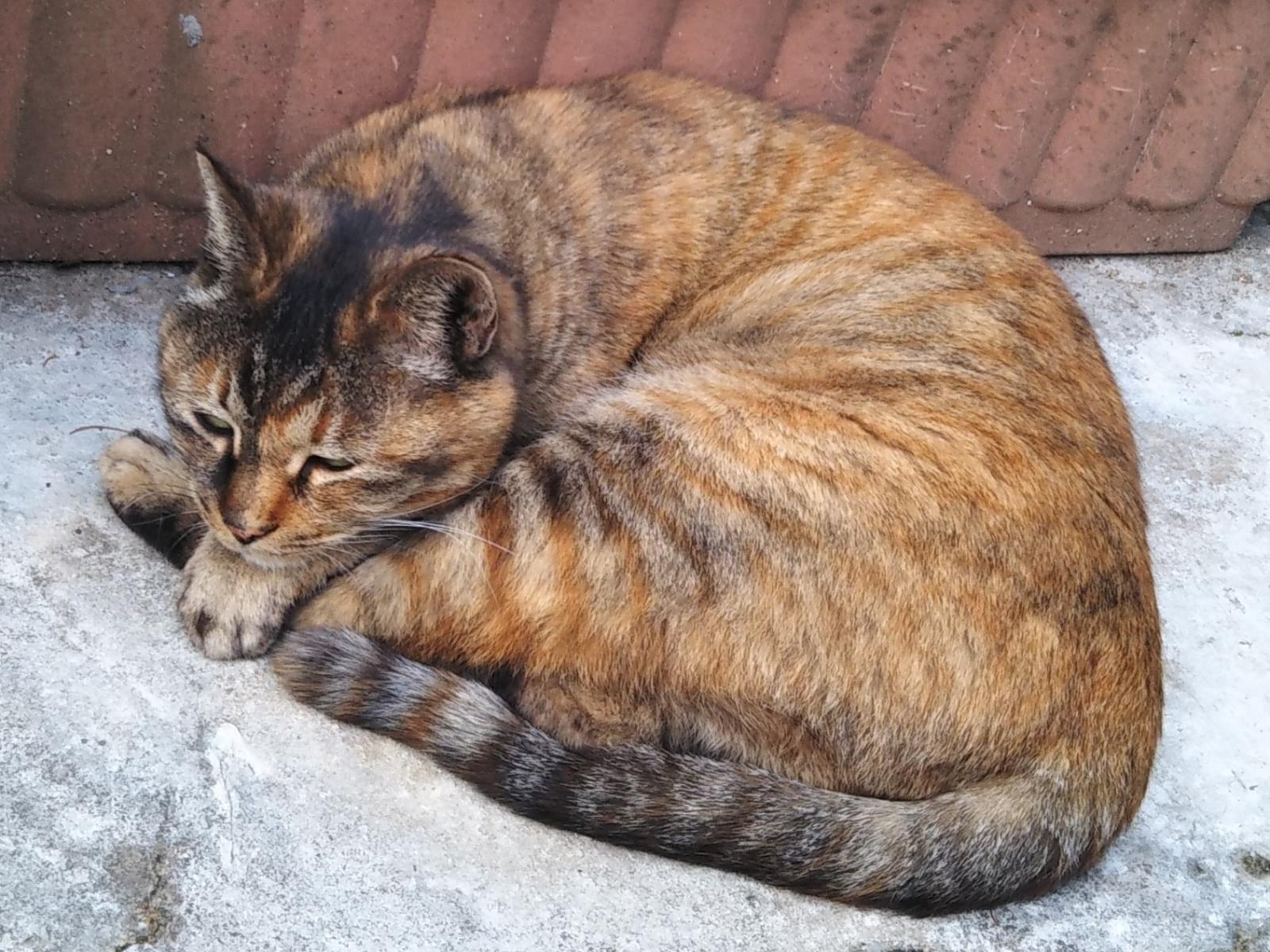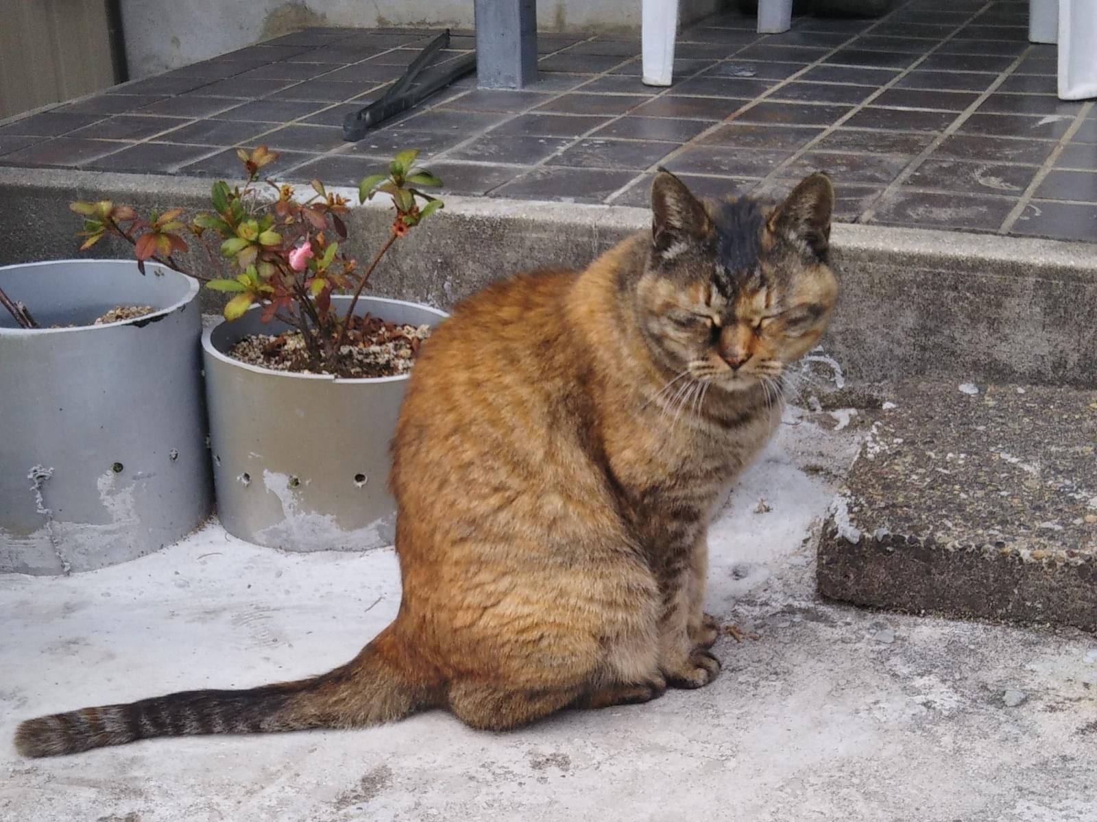 昨年10月頃から家の周辺で見かけるようになりました。とても人懐っこく、ぽっちゃりしているので、どこかで飼われていたんじゃないかと思います。