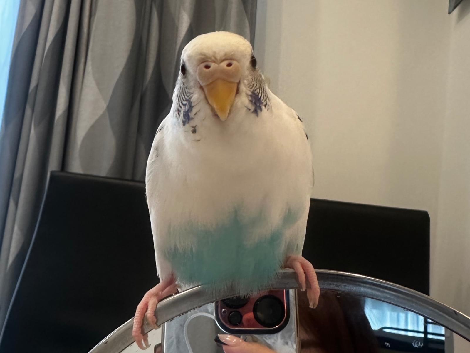 ピノと名前を呼ぶと返事します。肩や頭の上に乗る人懐っこい子です。