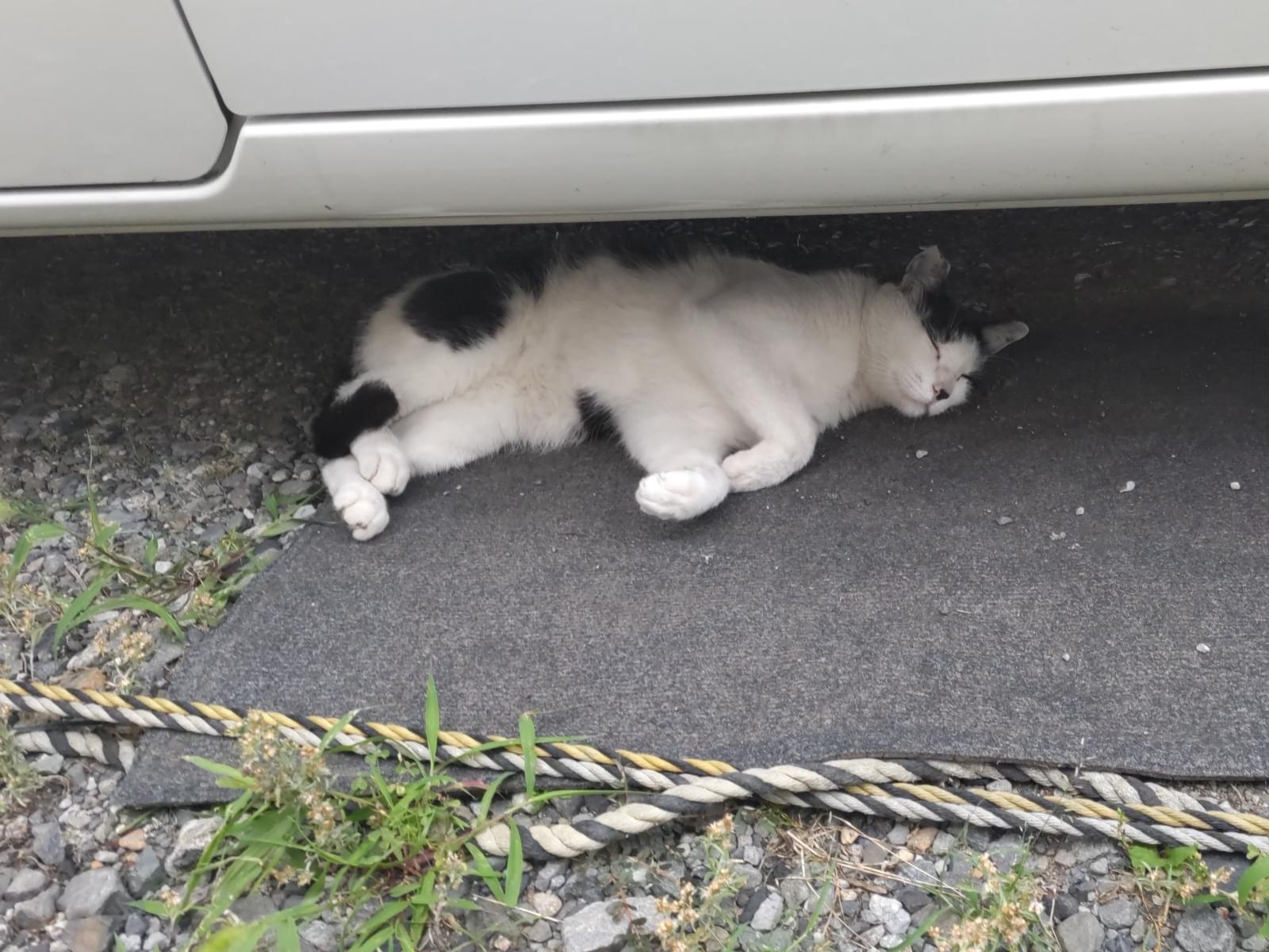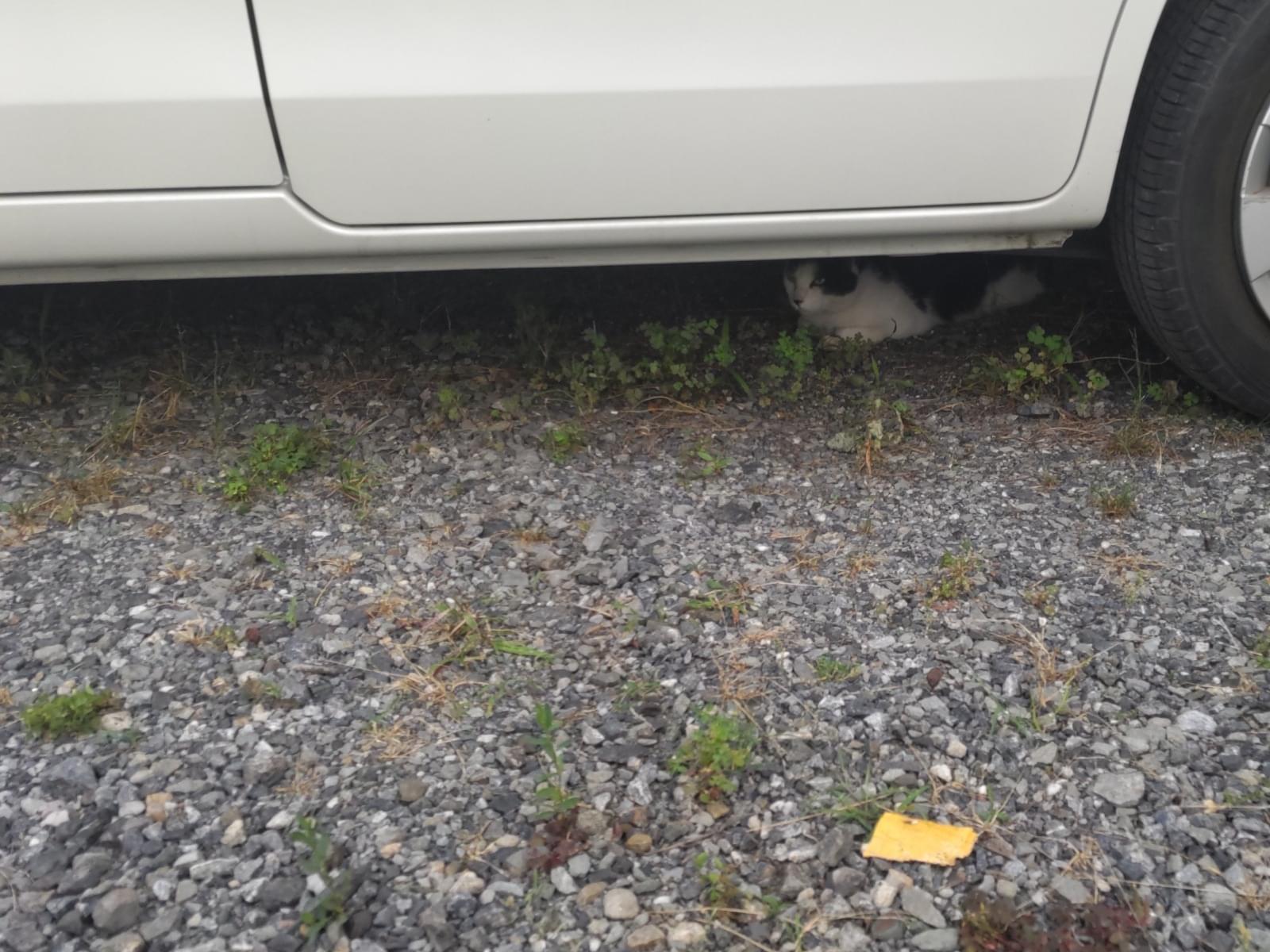 駐車場の車の下で、ずっと鳴いていました。地域猫の多い地域ですが、初めて見る猫です。