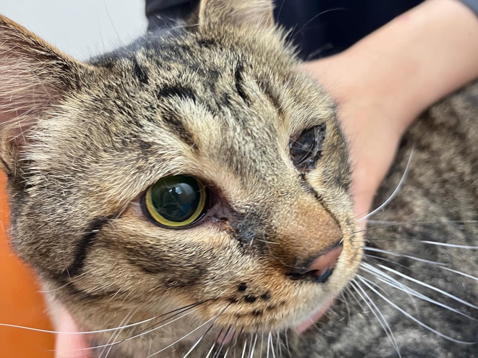 風邪により両目とも涙やけがあり左目は癒着し半分閉じています。