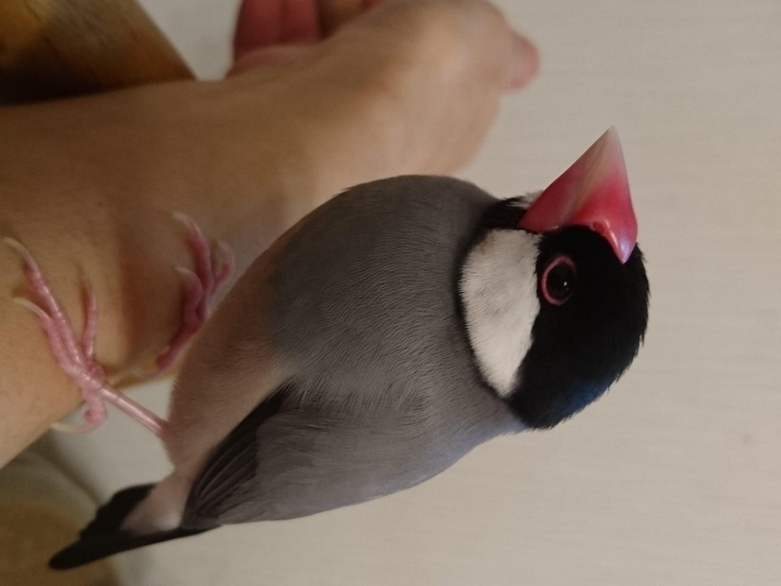 現在換羽中です。手乗り文鳥です。よくさえずります。