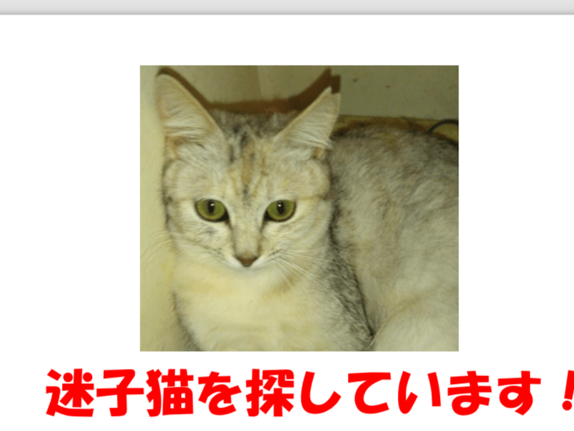 譲渡先での脱走の為、見知らぬ土地で心細く、お腹を空かせているかと思うと可哀想でなりません。