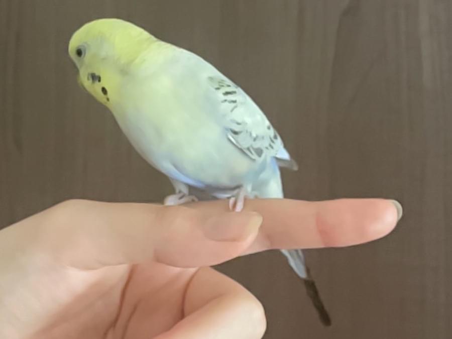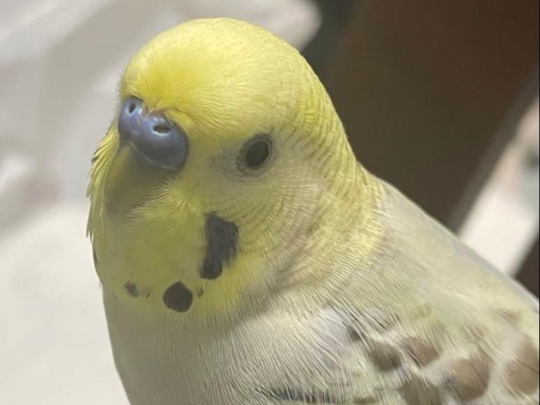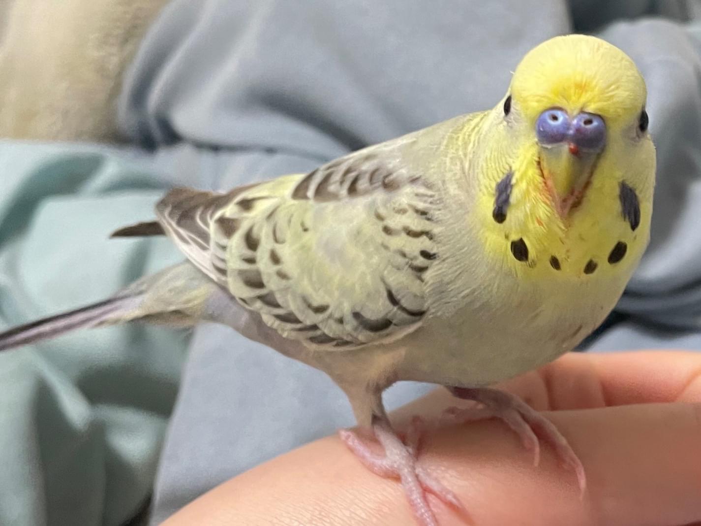 顔は黄色体色は青っぽい灰色 所々に青があります