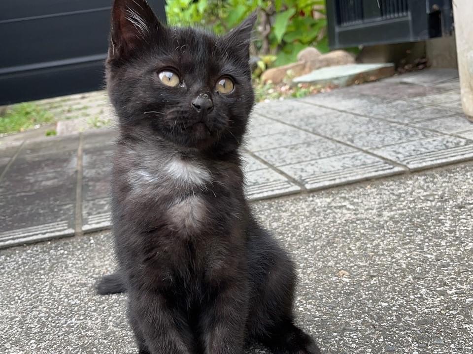 7月12日朝7時頃、砥部町高尾田で迷子になりました。特徴は、黒い子猫・胸の周りが白い・人懐っこい