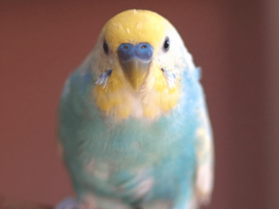 身体は水色に頭のてっぺんが帽子を被ったように黄色いセキセイインコです