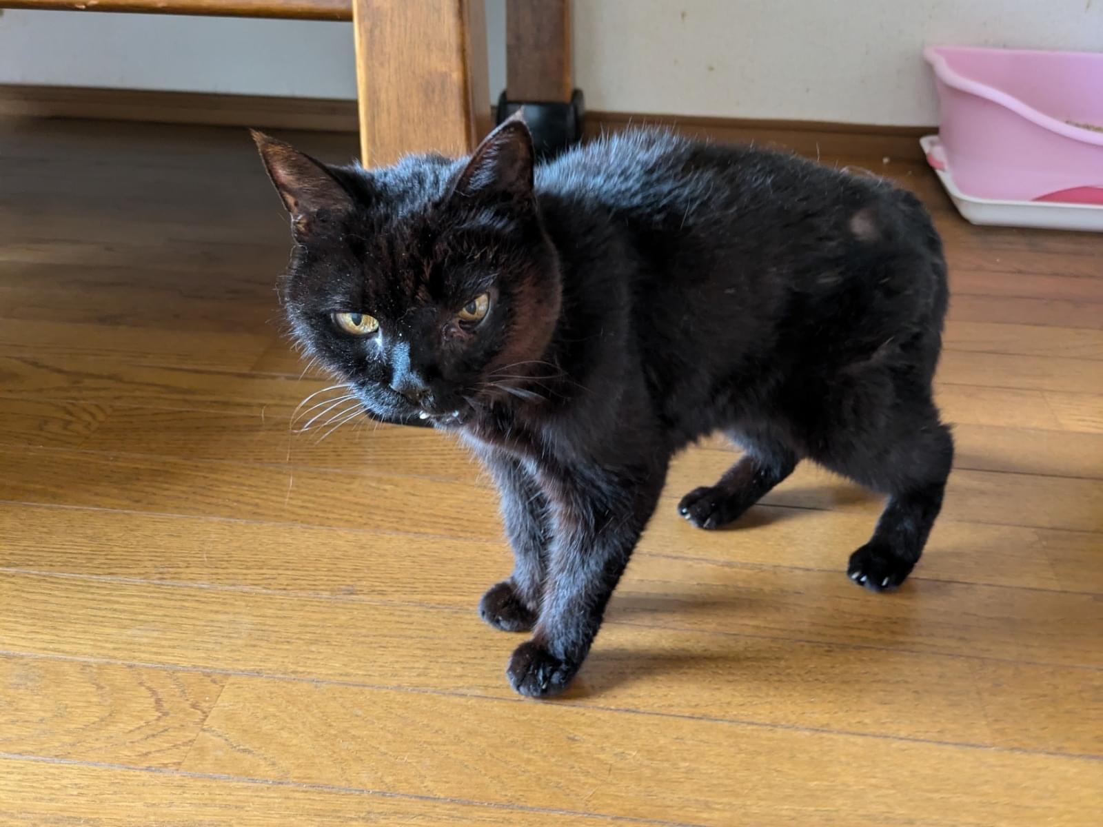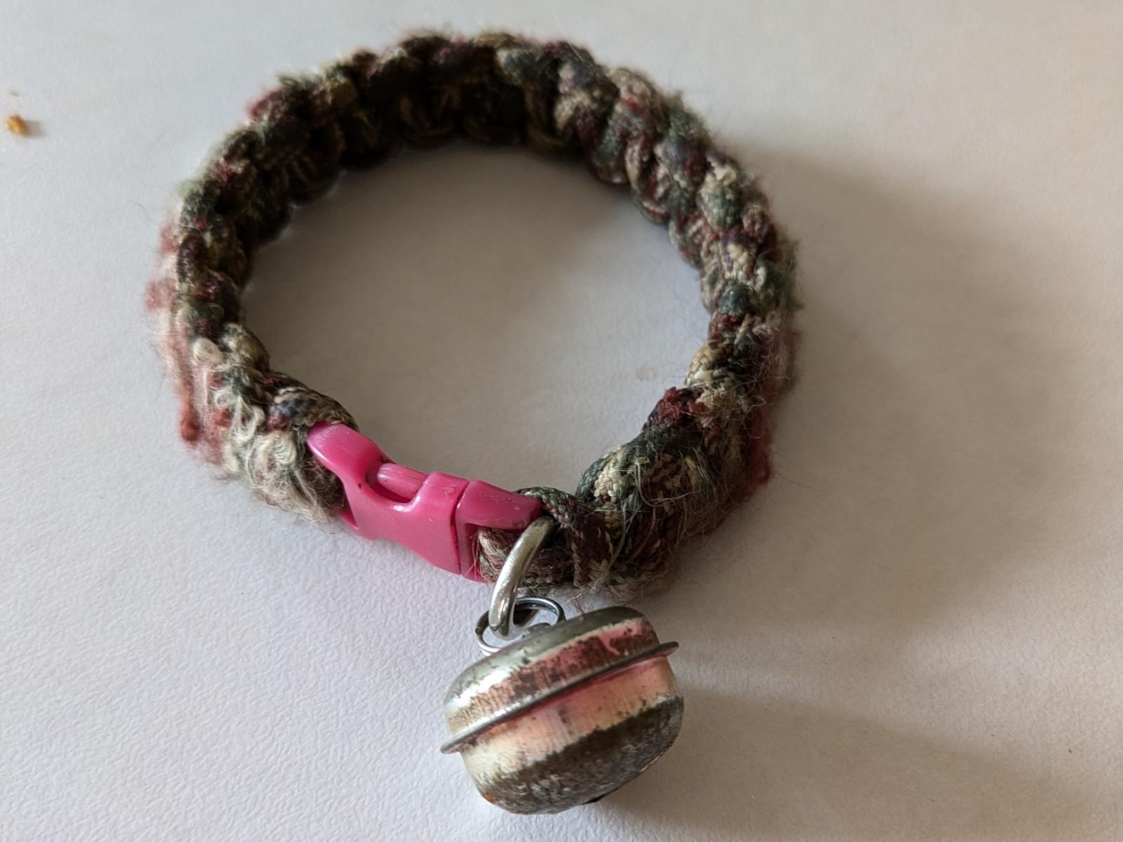 黒猫 ハンドメイドと思われる鈴ついた首輪をしていました。