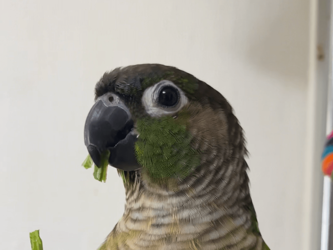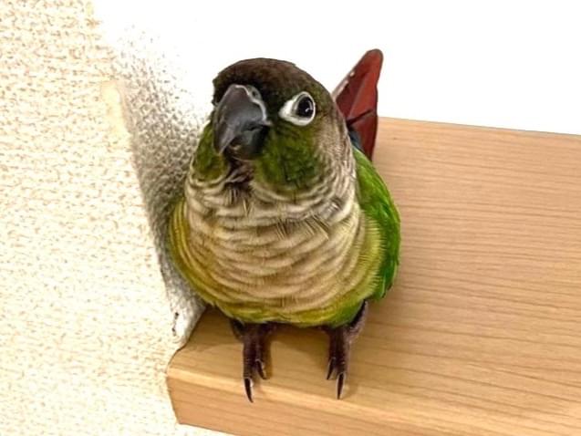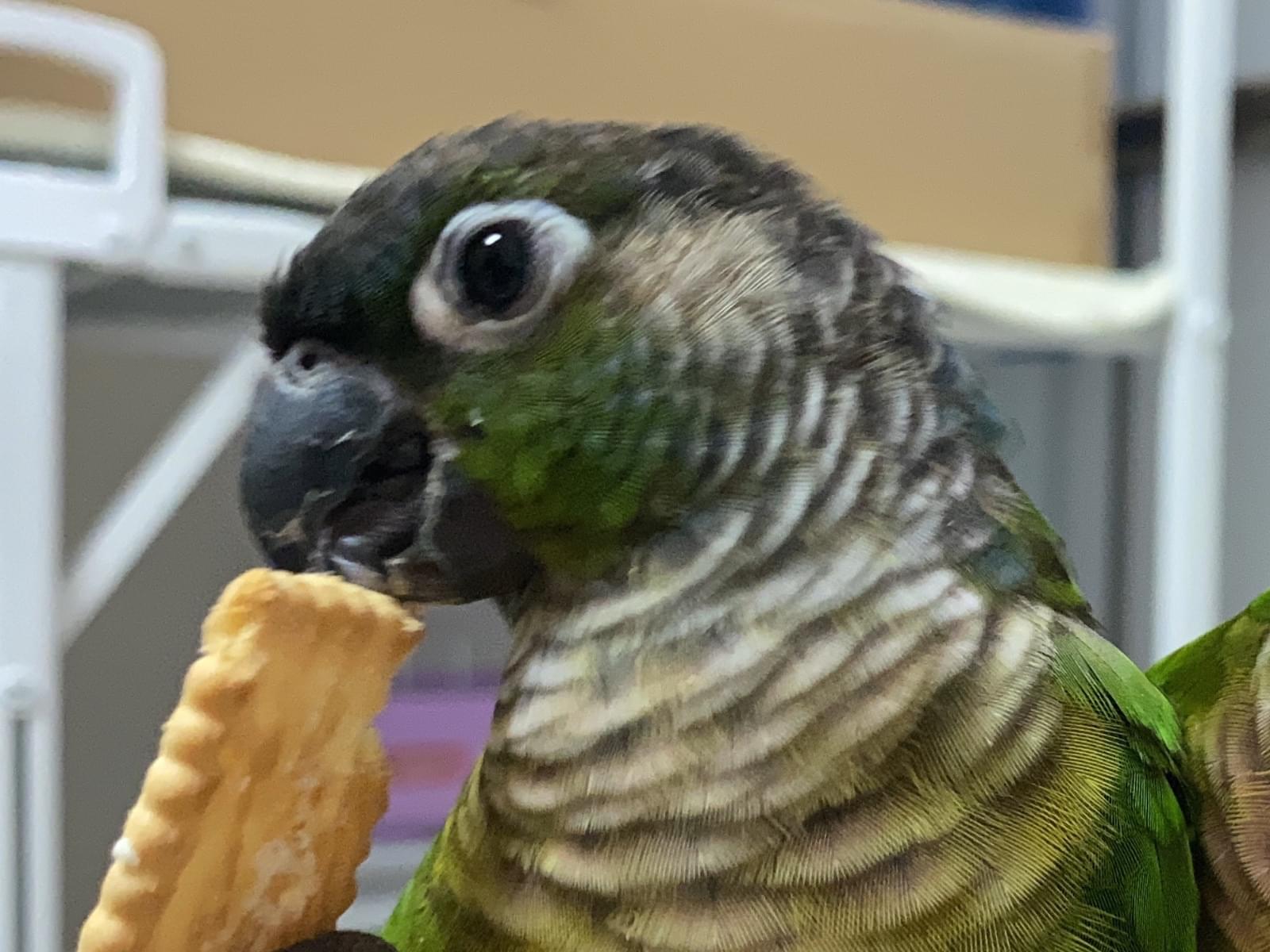 ホオミドリアカオウロコインコ ノーマル 足にリードがついたままです