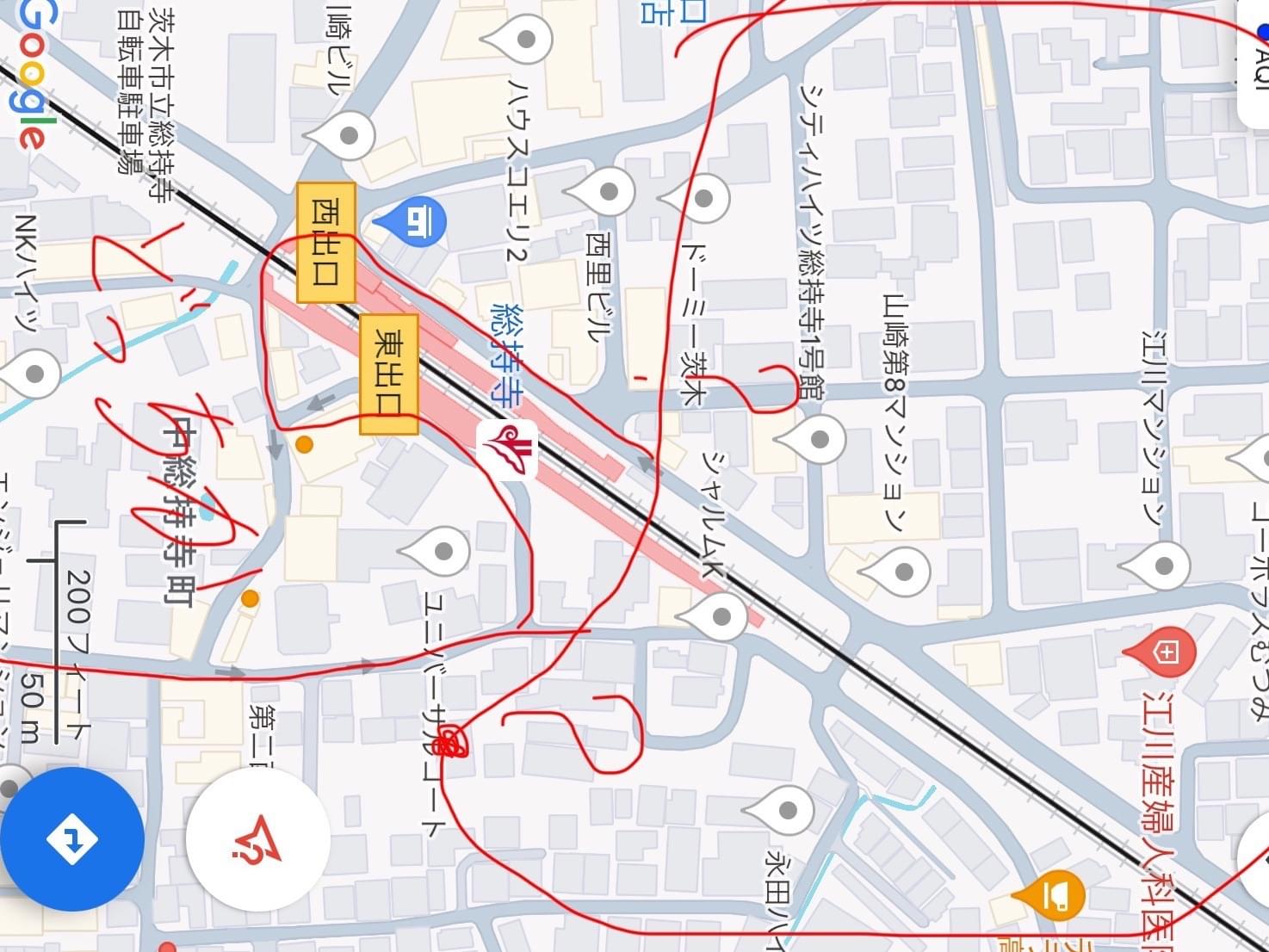(多分、高槻方面に走った可能性ありますが、この通りは道が狭く車も多い為、人の少ない住宅地に迷い歩いてるかもしれません。)