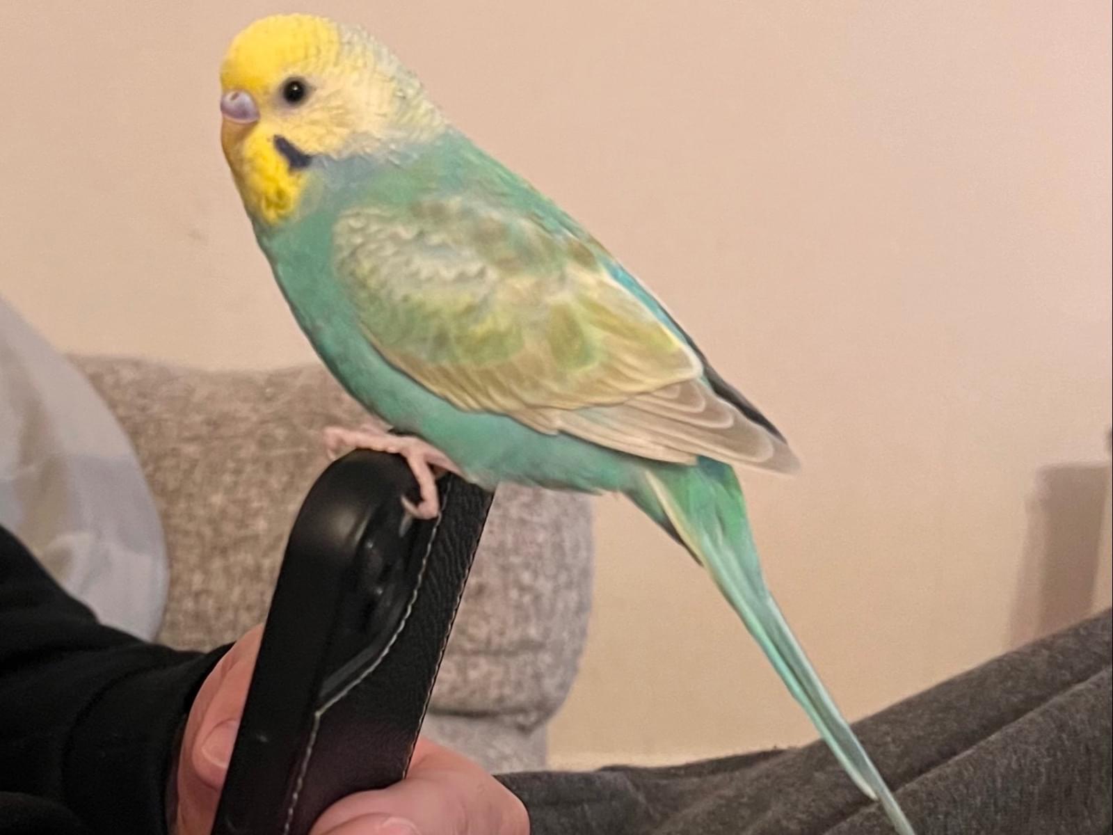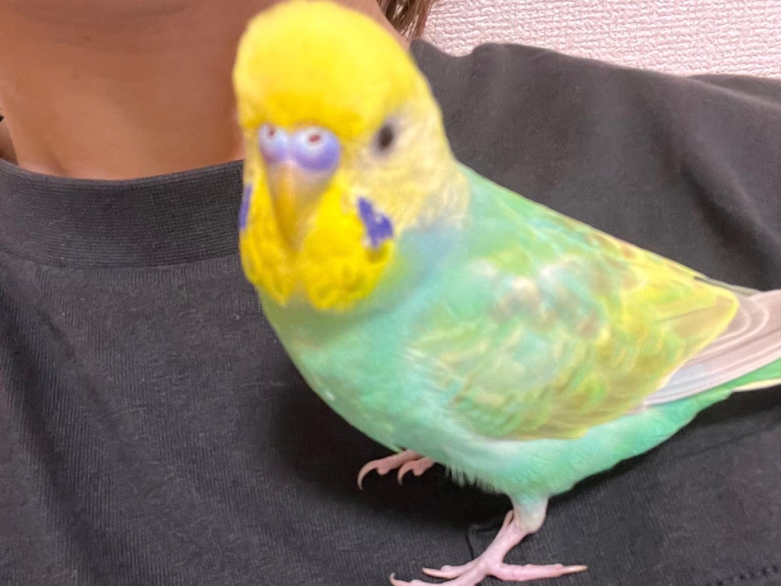 今は写真よりももう少し鼻が青く、手乗りで肩や頭にも乗ります。