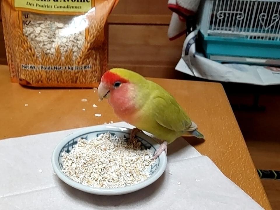 小桜インコ(頭がオレンジ、体が黄色レモン色)