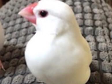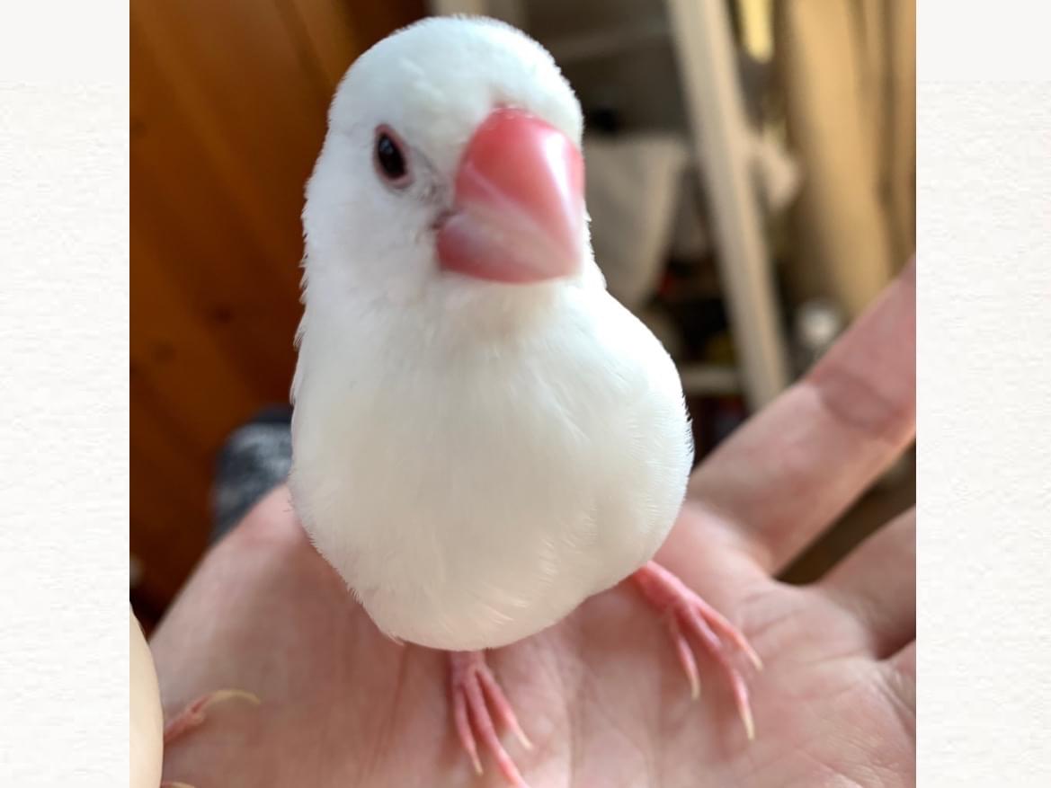 特徴:白い文鳥、くちばしがピンク色、スズメくらいの大きさ