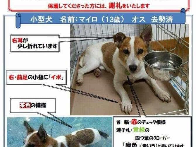 目撃した方、保護した方、似た犬をその時期に拾って飼っている方、情報をお寄せ下さい。