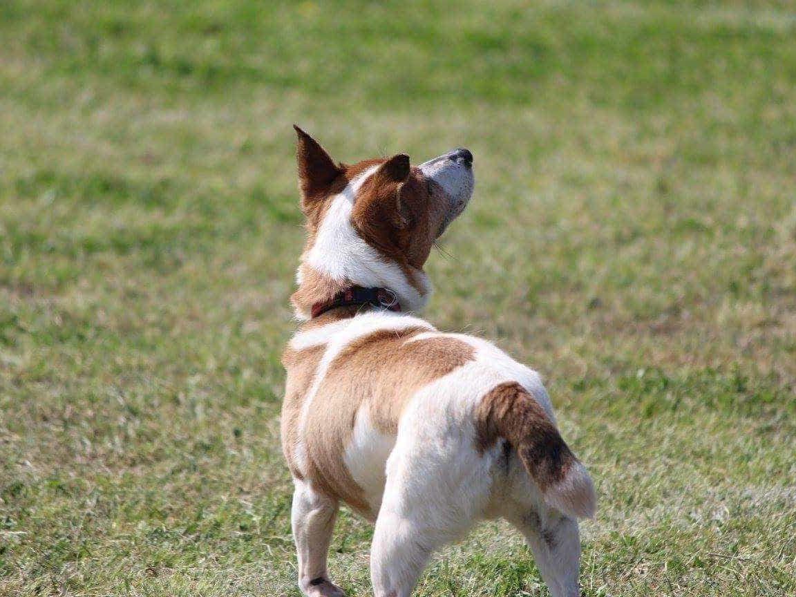 赤の首輪、黄緑の迷子札を付けた犬を探してます