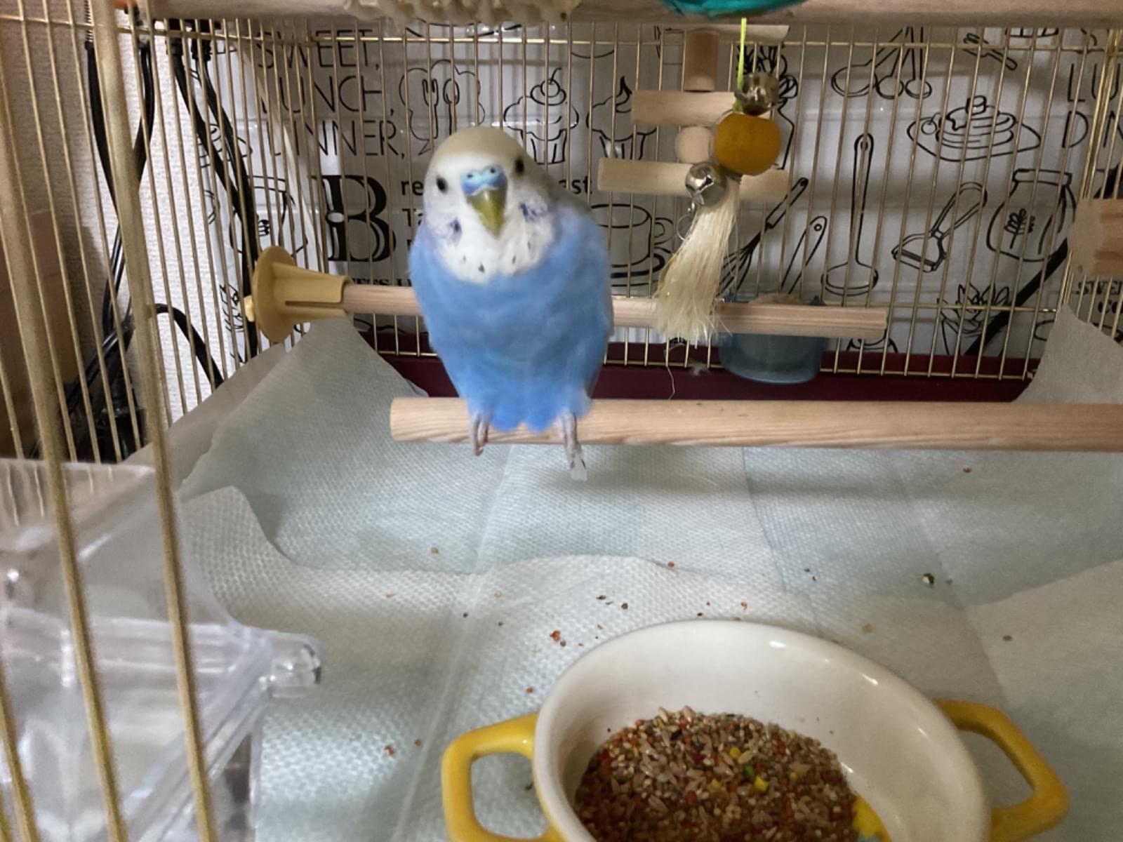 一般的なセキセイインコの鳴き声だと思います。色は白と少し深い青色。性格はよく食べてよく寝てよく遊ぶことが大好きな子です。