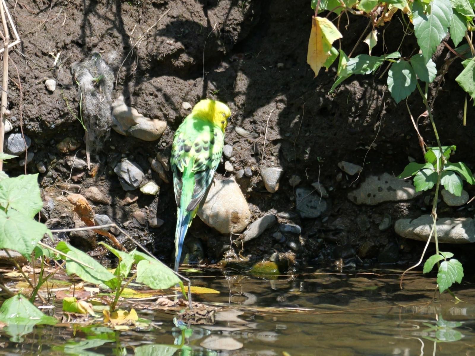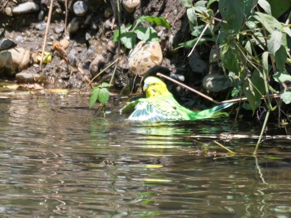 ヒラヒラとインコさんが飛んできて川に落ちました
