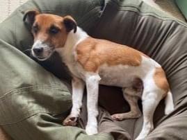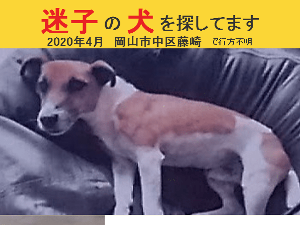 お友達の犬が家から飛び出し帰って来ません。野鼠か野鳥を追ったと思われます。目撃、保護の情報をお寄せ下さい。宜しくお願いします。毛色は白と茶色で10歳になる小型犬(ジャックラッセルテリア)のオス犬です。半垂れ耳で尻尾はピンと立ち、迷彩柄の首輪をしています。目撃、保護の情報をお待ちしています。