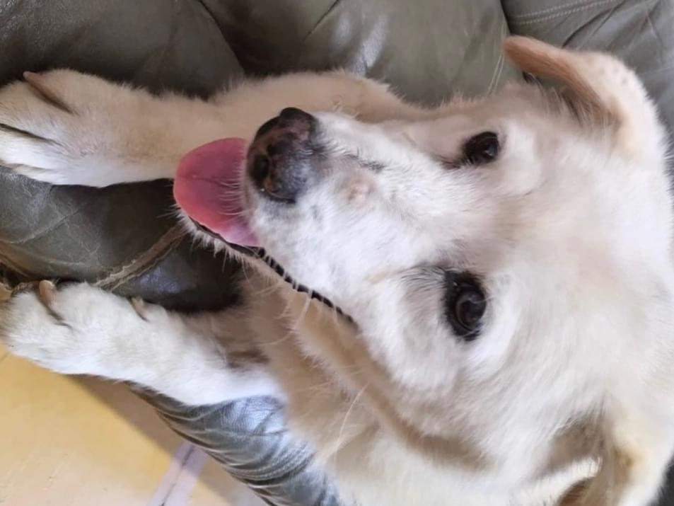垂れ耳で鼻と前足のひじが少しハゲあり