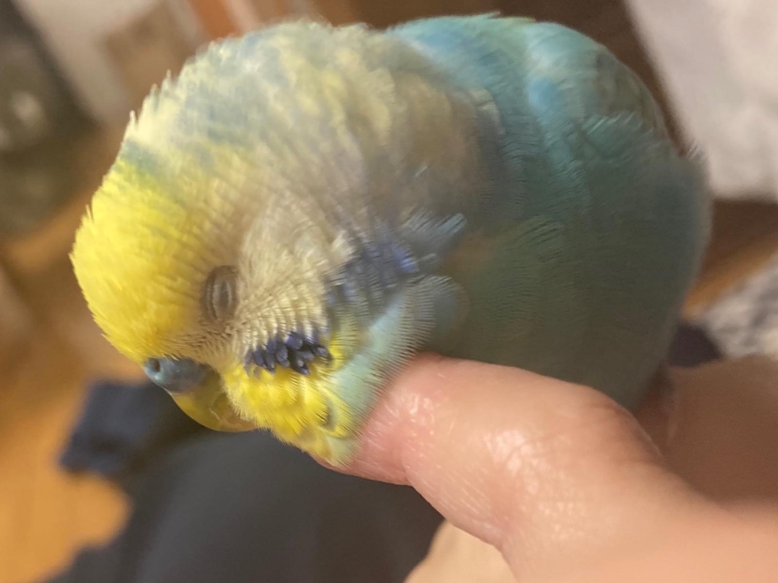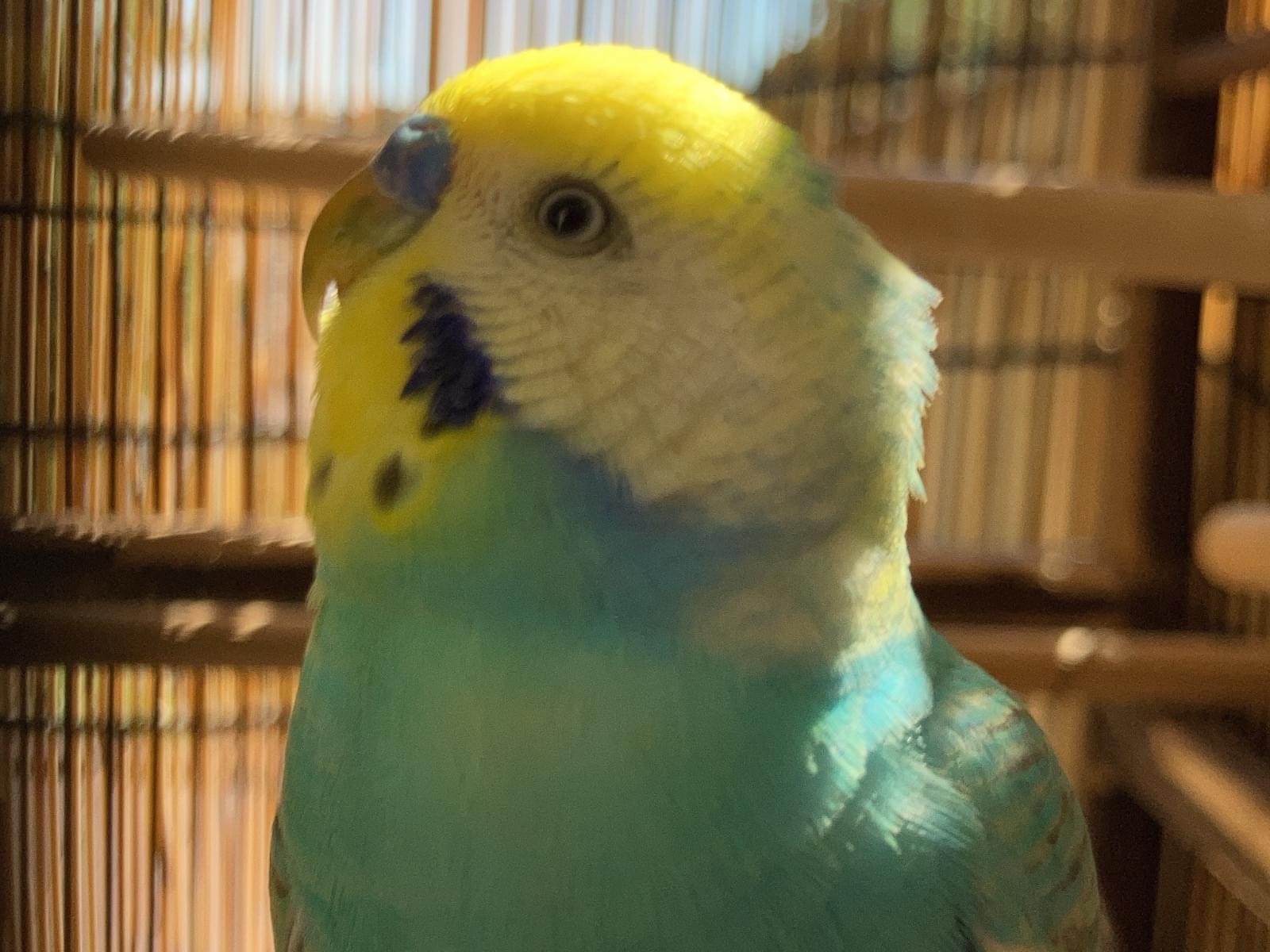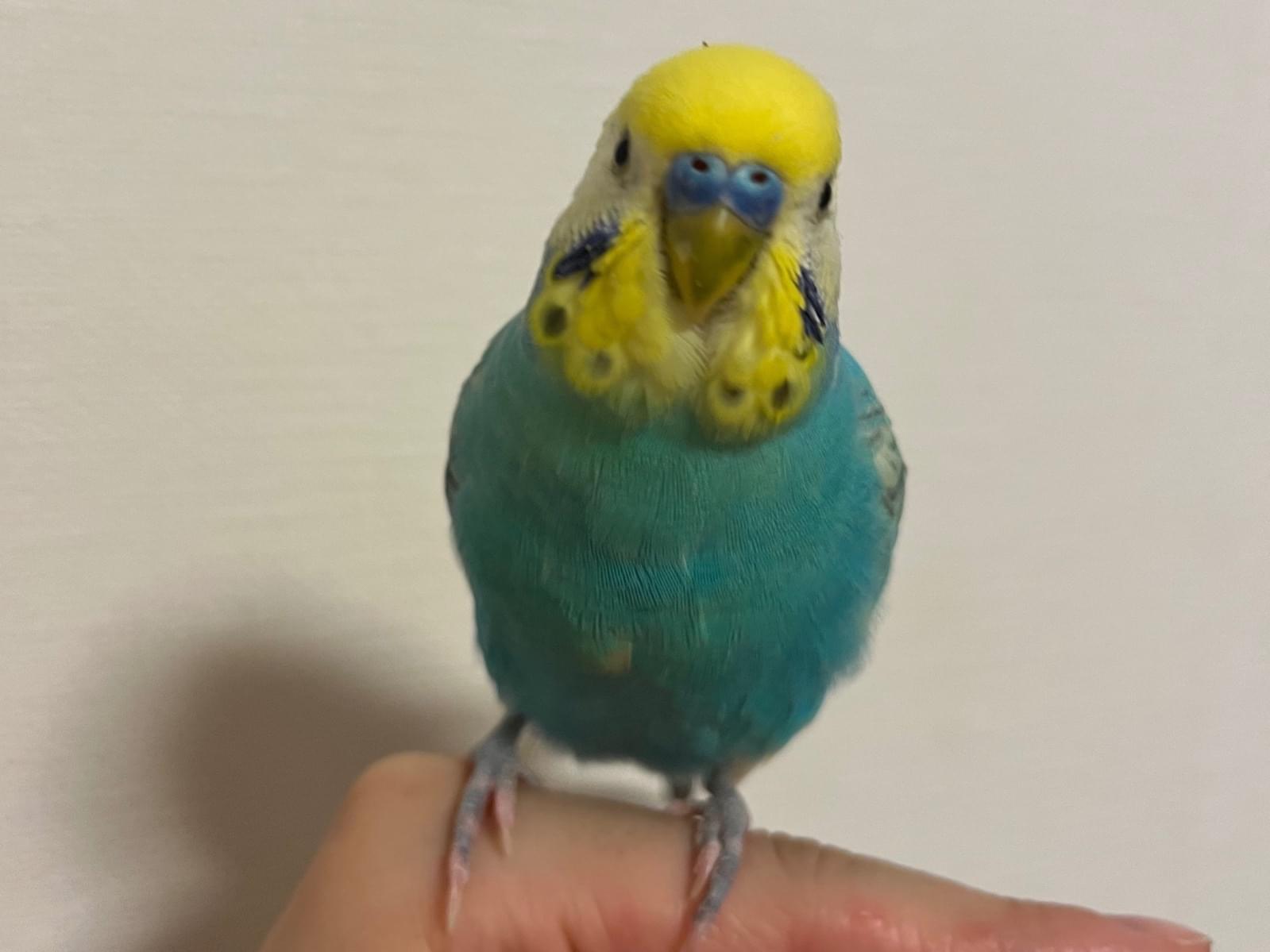 黄色い頭で、体全体が綺麗な水色のセキセイインコ