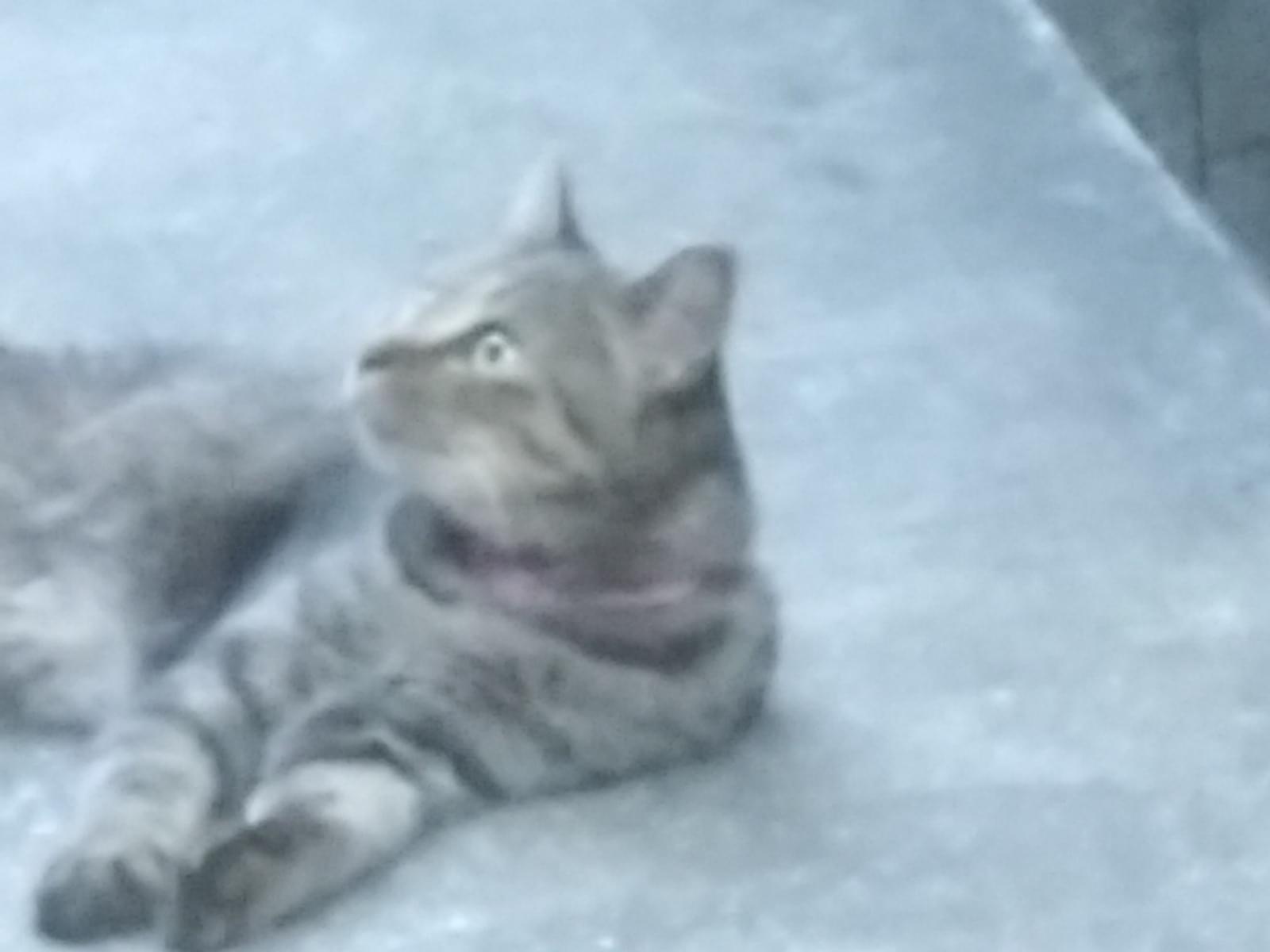 ピンクの首輪のキジトラ?トラ柄の猫