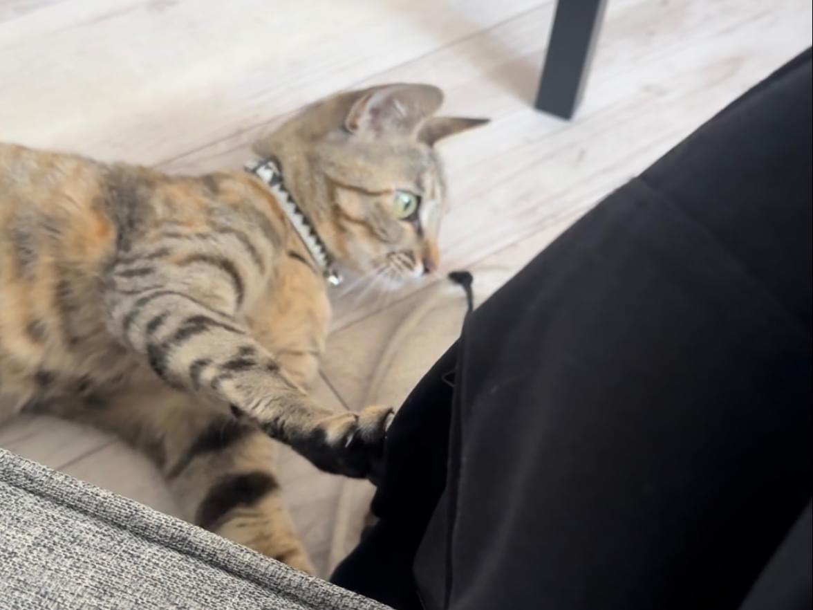 元野良猫で1ヶ月くらい前に保護をしたばかりなので警戒心も残っています。