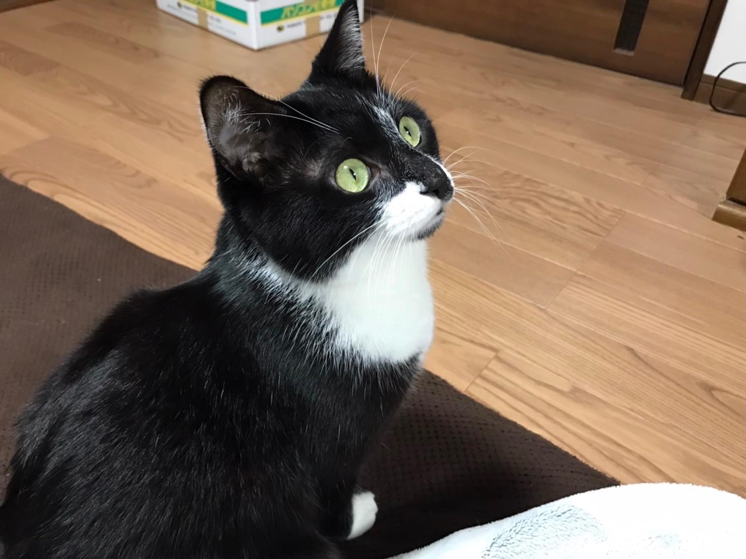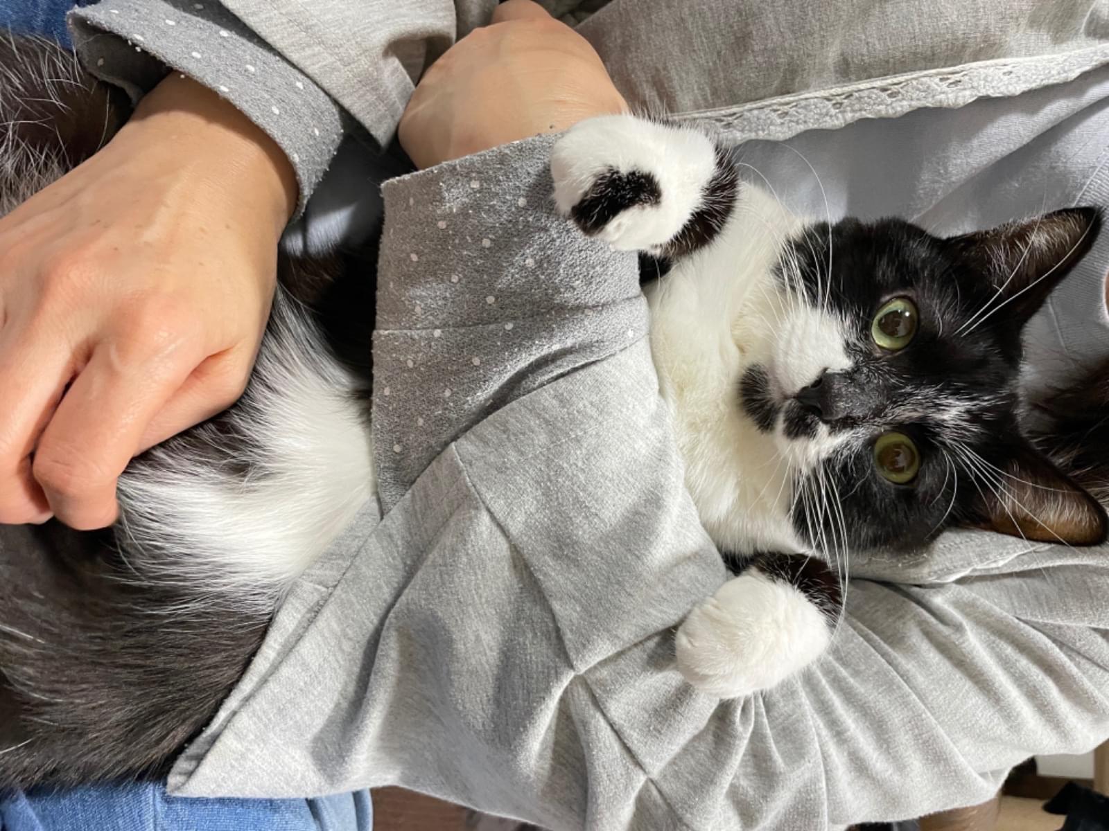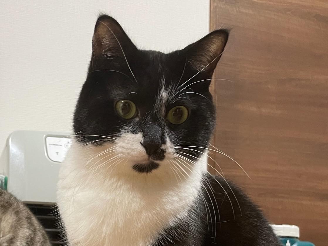 ・歪な靴下模様ですが右前足に黒い穴あき模様があります。