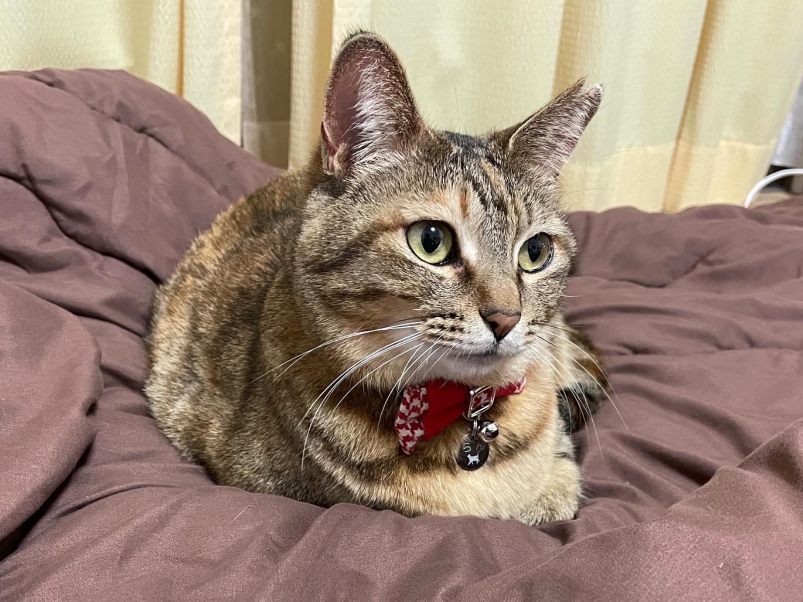 外れていなければ和柄の首輪をしています。首輪に迷子札があり、ひらがなで「らん」と書いてあります。