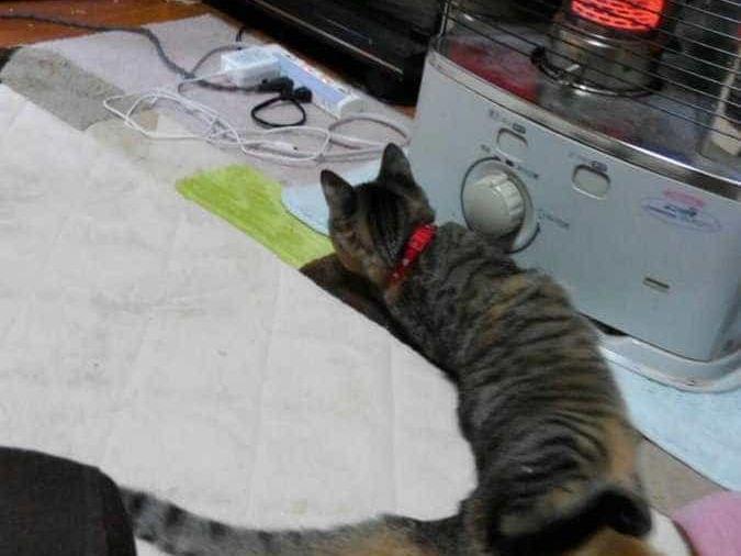 やんちゃなメス、鈴付きの赤い首輪をしています。