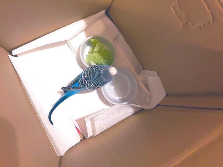 マンションの敷地内でセキセイインコのブルーを保護しています。