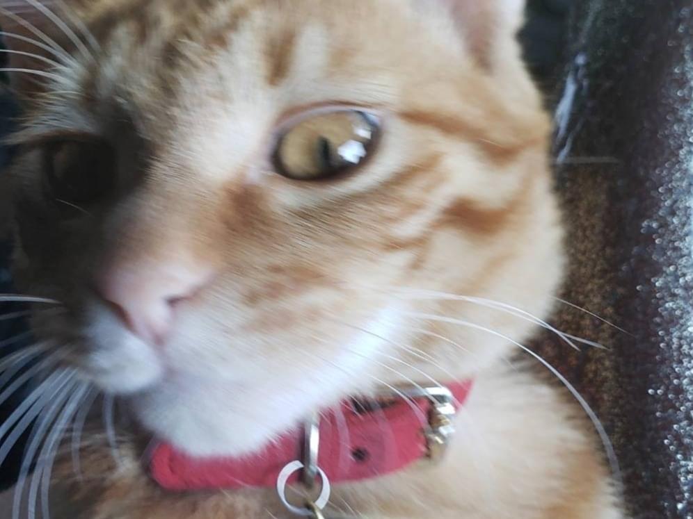 赤い首輪に大きめの鈴。好奇心旺盛ですが、人見知りの傾向あります。