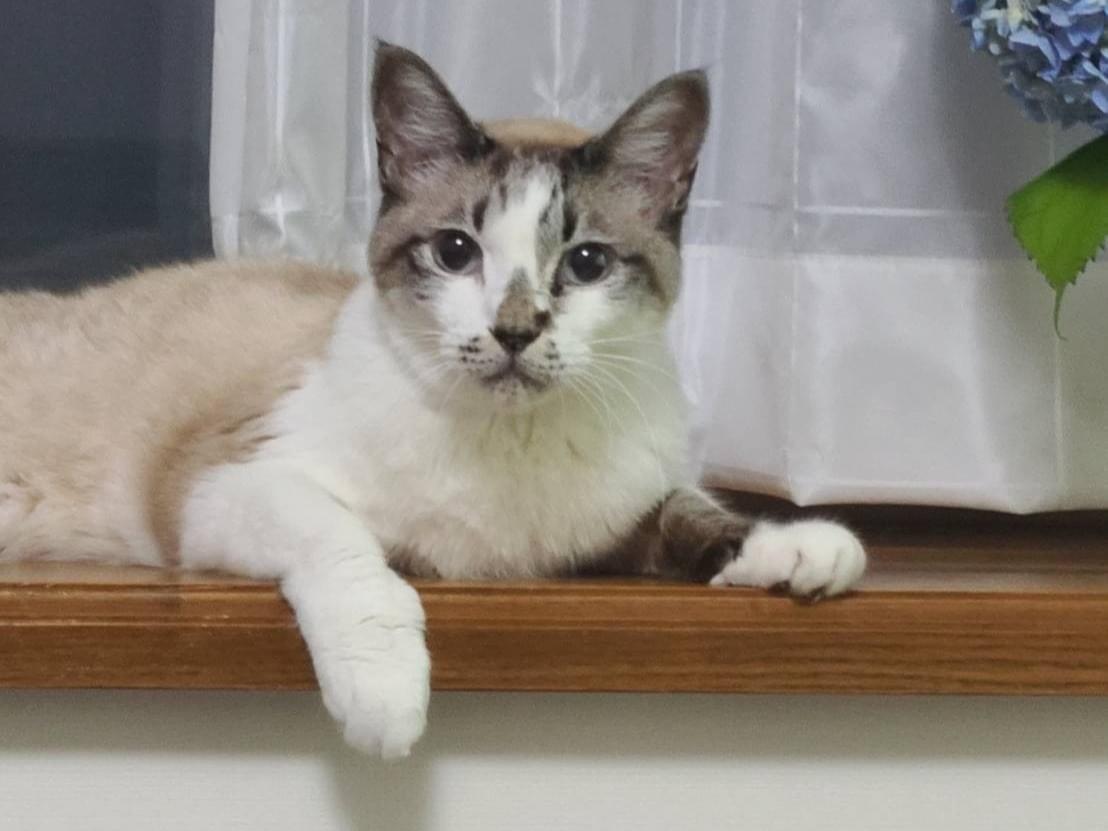 雄猫としてはやや小さめのスマートな猫ちゃんです。とても人懐こい子で、頭も良いです。