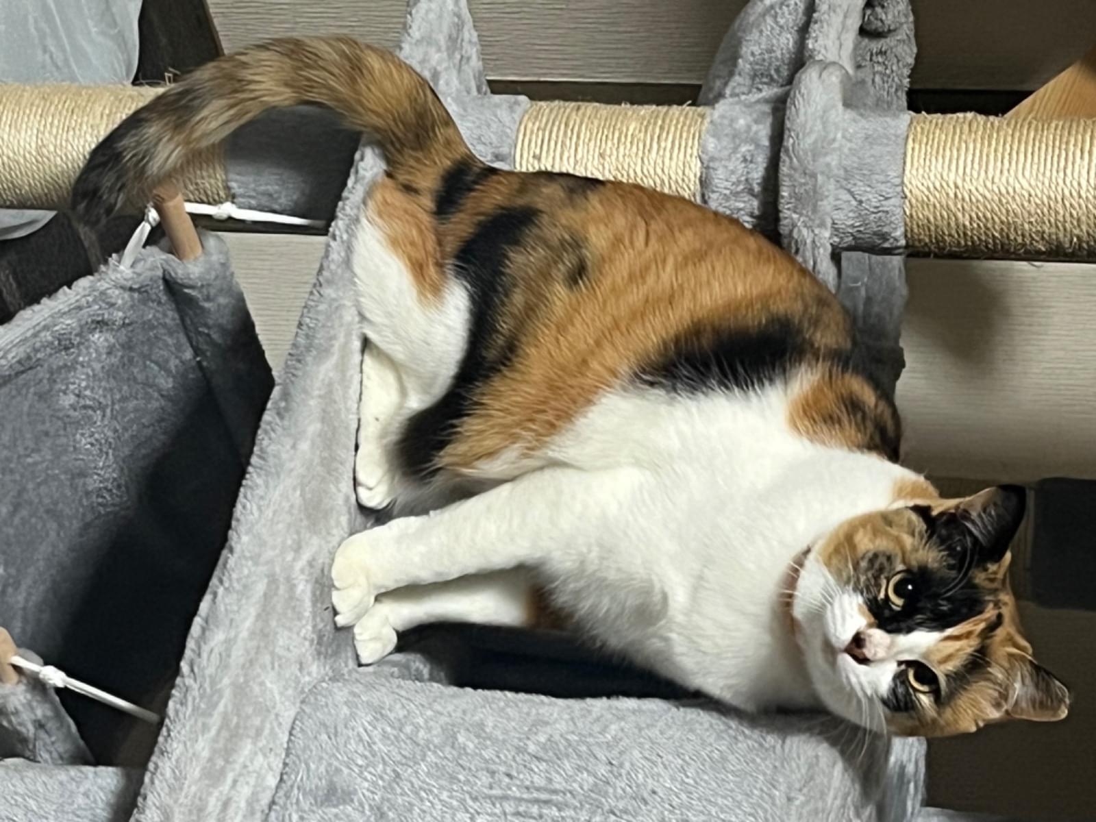 特徴:三毛猫(白・黒・茶)背中茶色多め