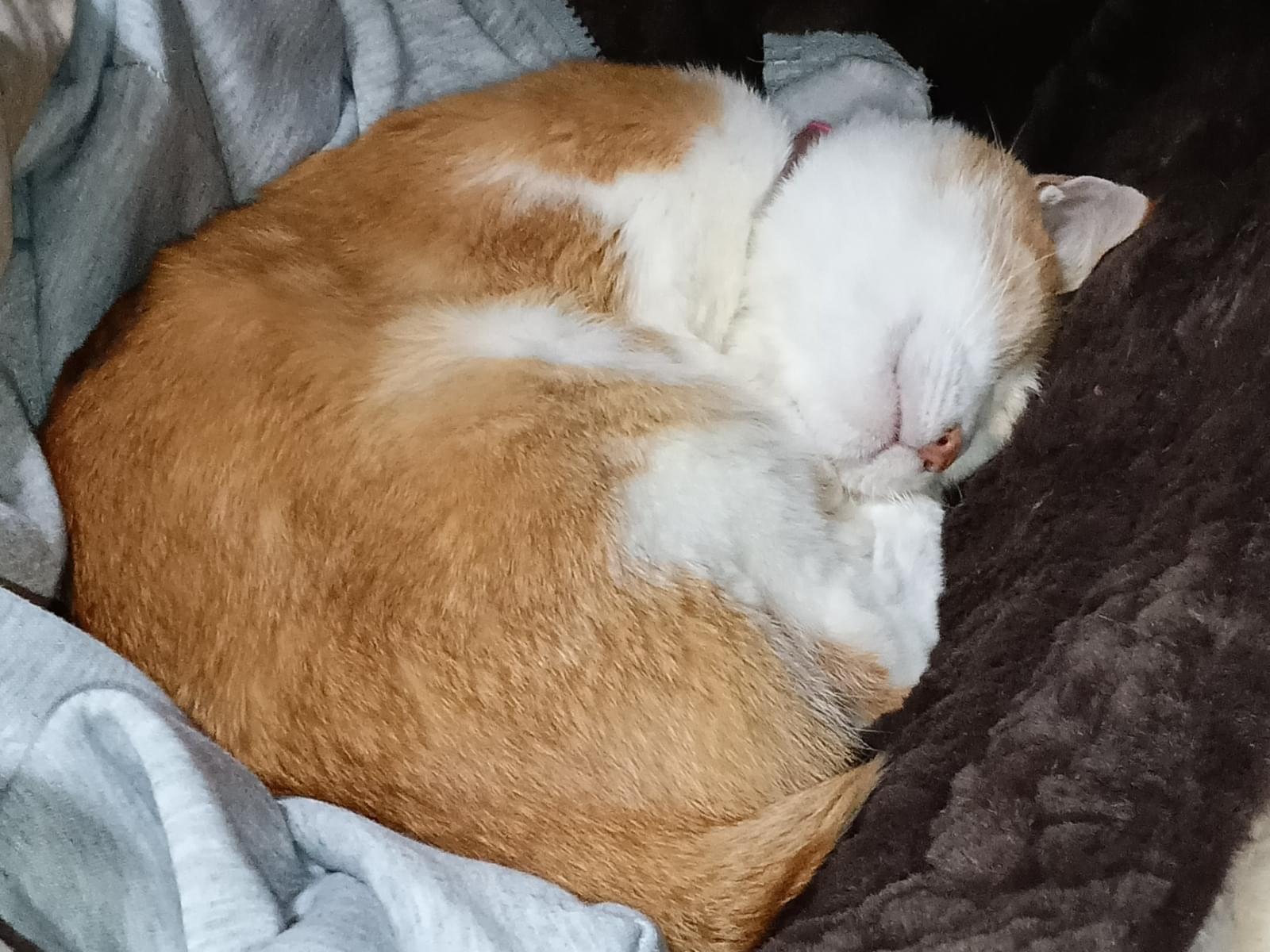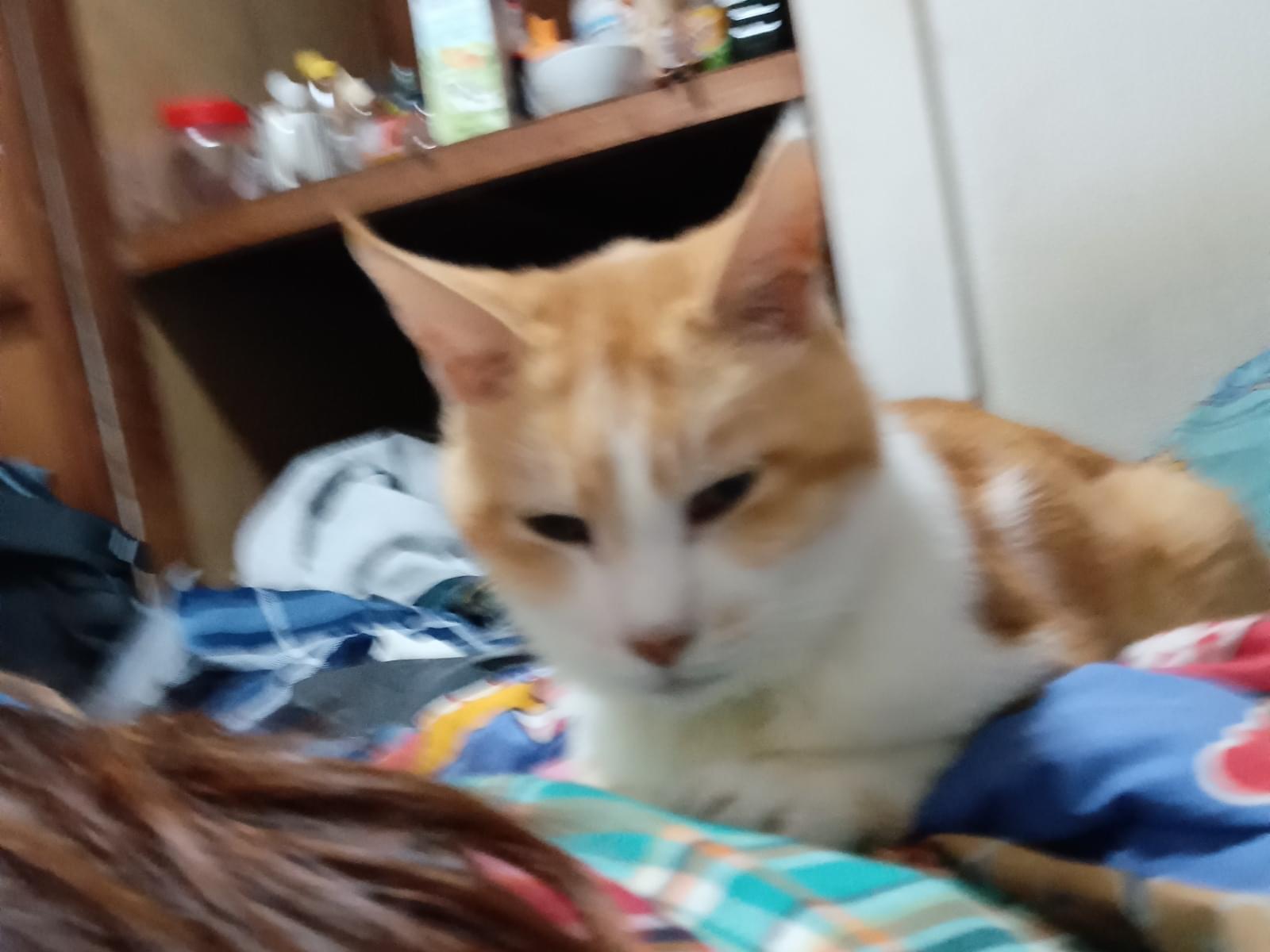 しっぽの短い茶白がり痩せ猫を探しています。