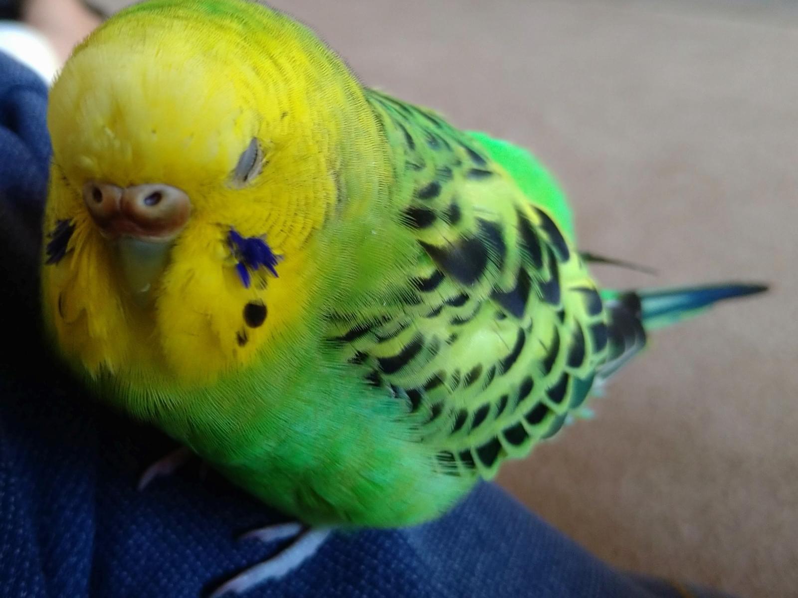 頭が黄色で体が緑のセキセイインコを探しています。
